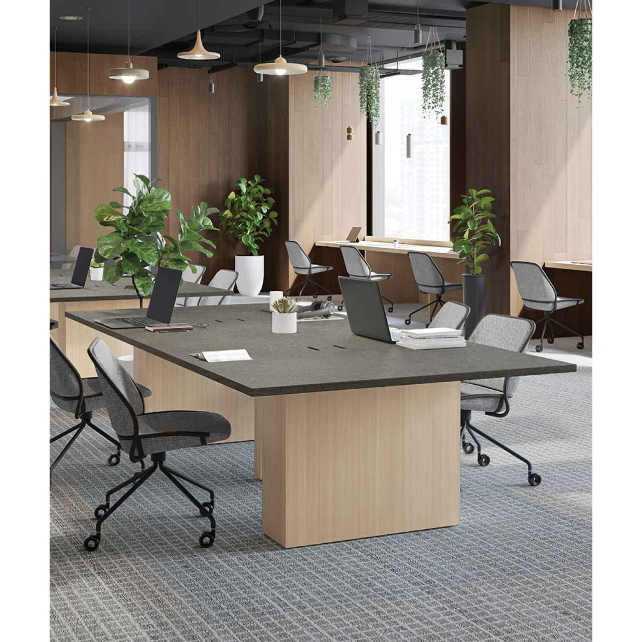 指紋レスメラミン化粧板(セルサス)を使用したCT51同形状のビッグテーブルです。光を抑えたマットな質感がしっとりとした手触りと深みのある表情を生み、空間に上質な落ち着きを与えます。清潔感を保ちながらメンテナンス性にも優れており、カフェやレストラン、待合スペースやオフィスのミーティングルームに最適です。ゆったりとしたサイズ感で木製椅子とも好相性な、デザイン性と実用性を兼ね備えたテーブルです。