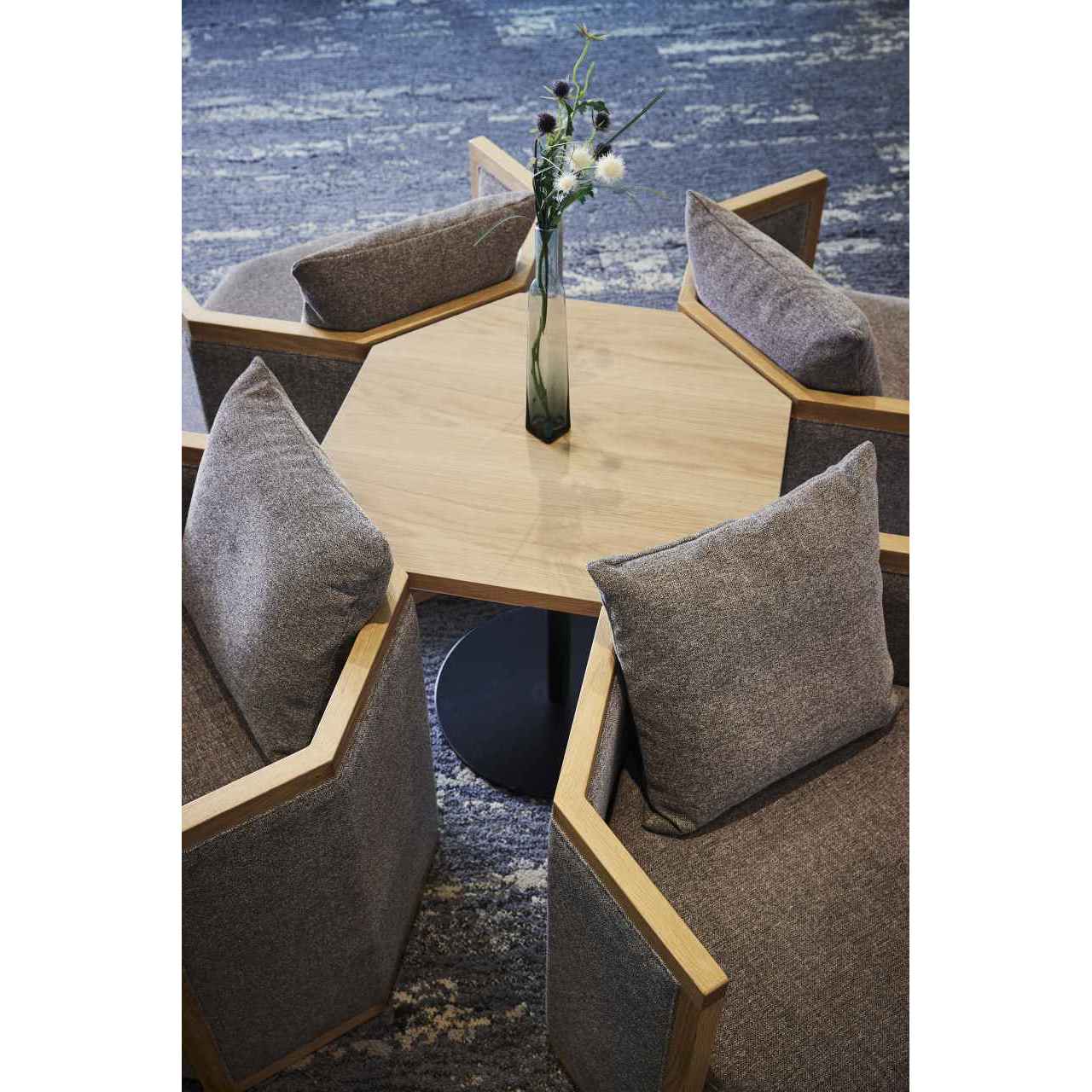 W013の魅力を引き立てる専用デザインのサイドテーブルです。八角形の天板を採用することで、W013との統一感を保ちながら自由度の高いレイアウトに対応できます。天然木(ビーチ材)を用いた上質な仕上がりで、コンパクトながら存在感のあるサイズ感が特徴です。カフェやレストラン、待合スペース、オフィスのミーティングルームなど幅広いシーンに最適で、木製椅子と組み合わせることで空間全体に洗練された調和をもたらします。