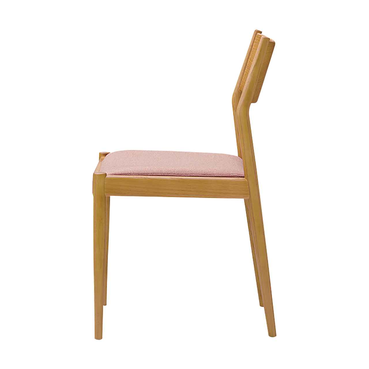 シンプルでありながらレッドオークの表情豊かな木目であたたかみを感じる木製チェア。