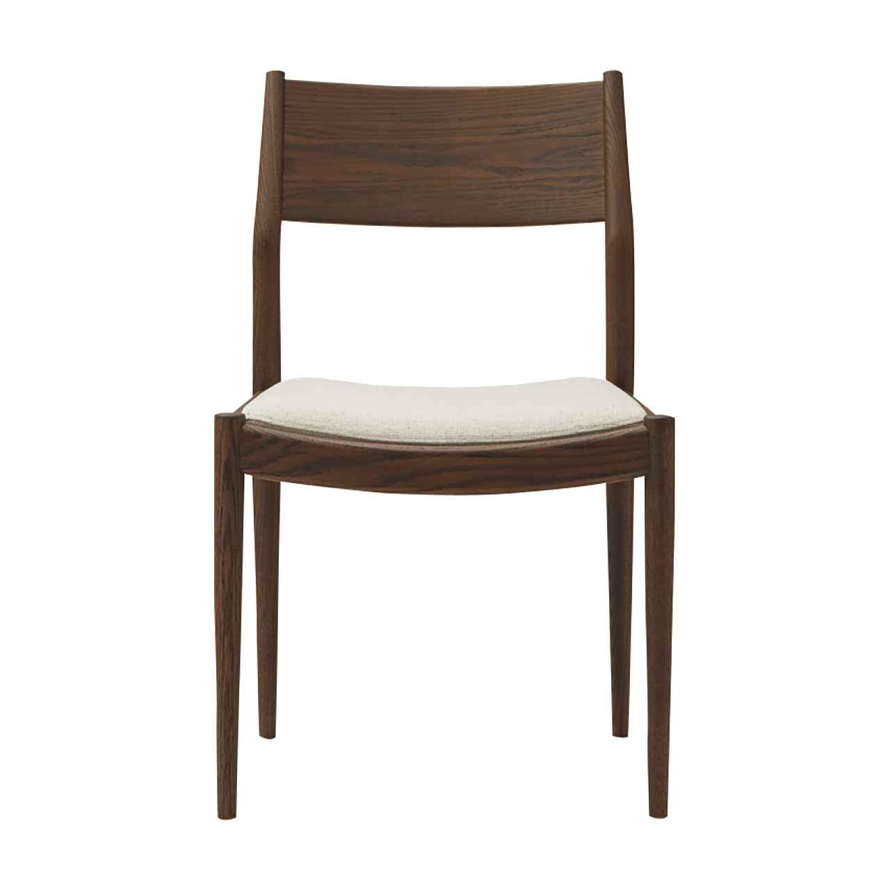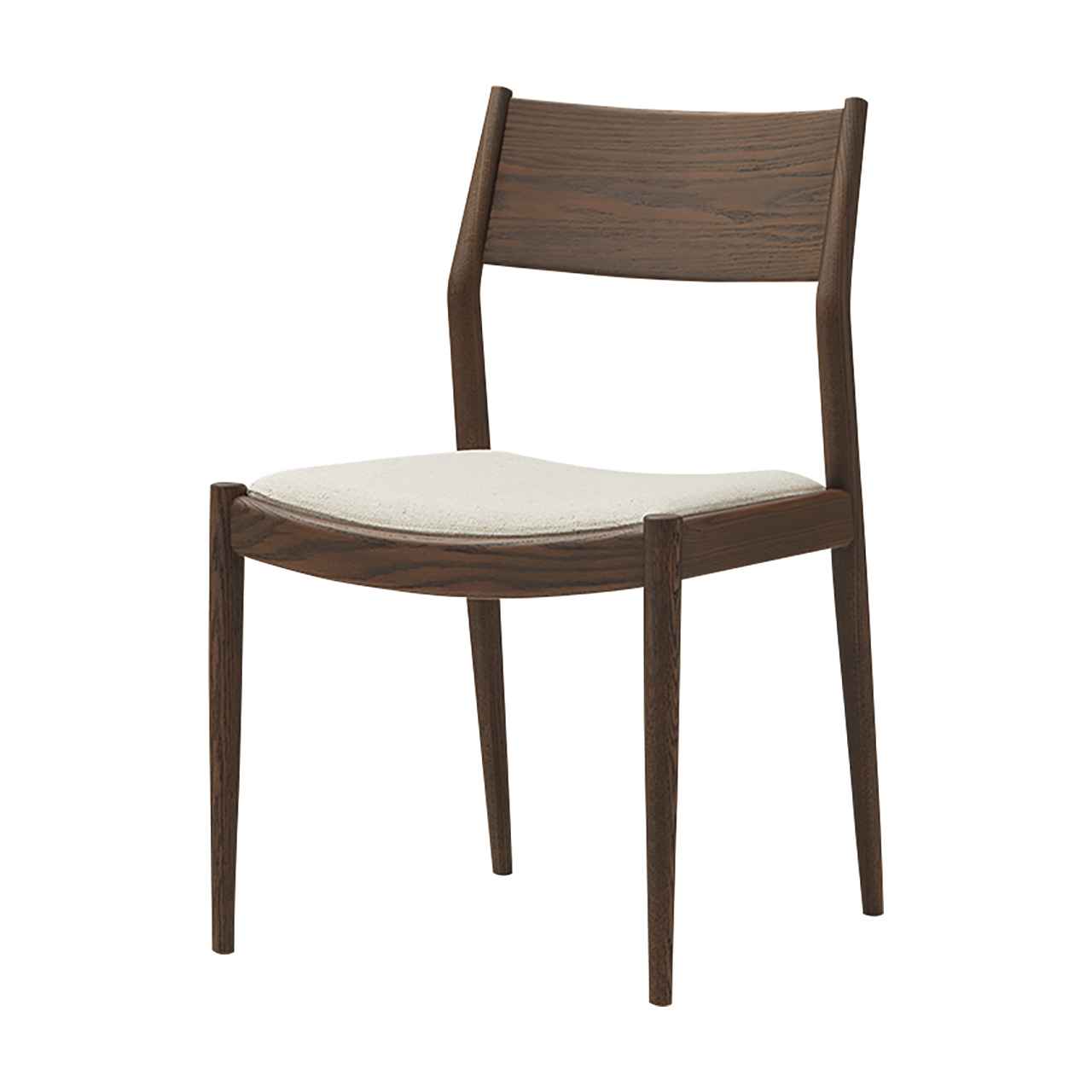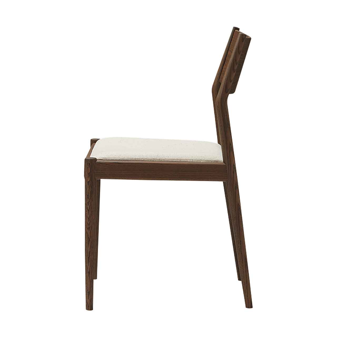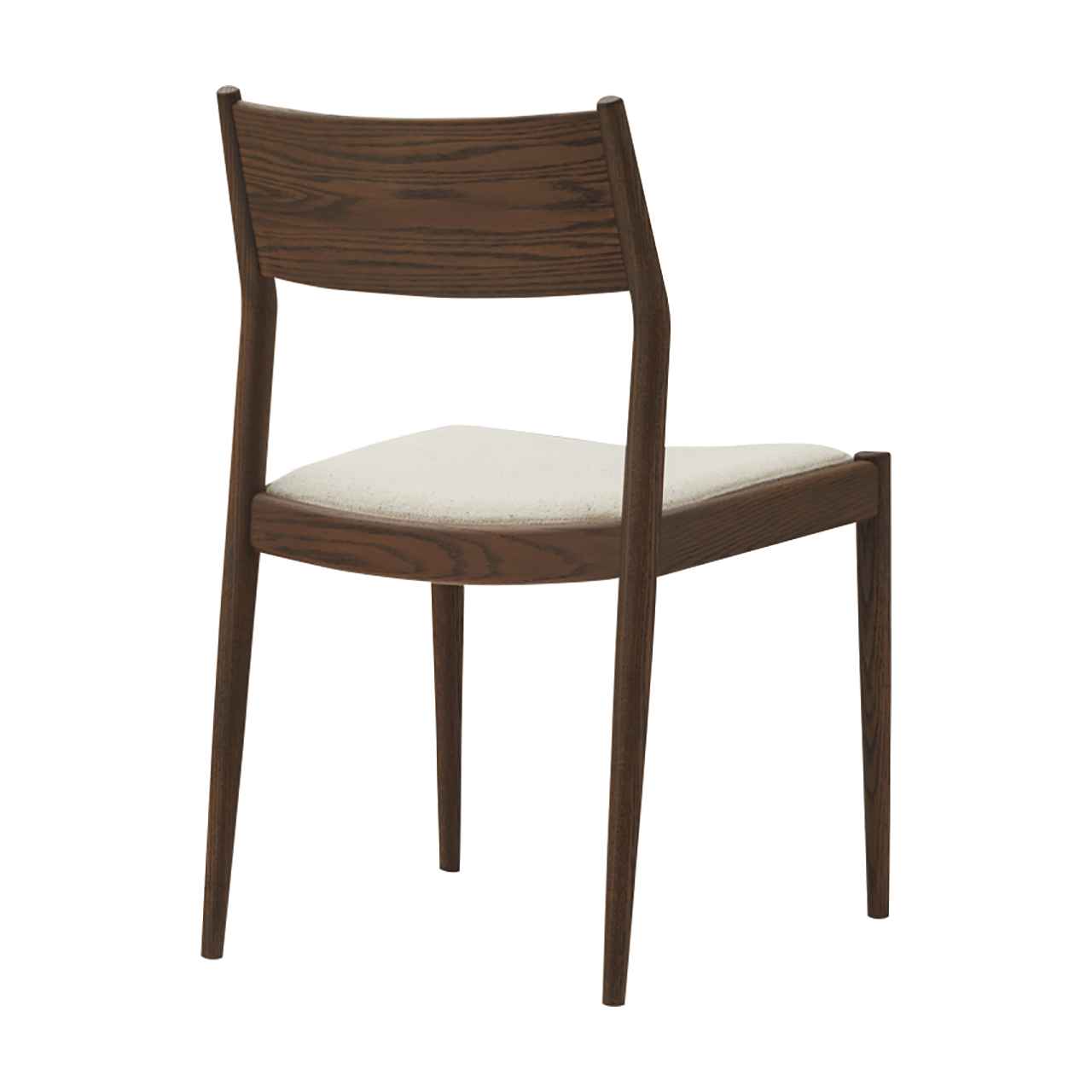 空間を選ばない汎用的な意匠でありながら緩やかに弧を描いた部材やテーパー脚で構成する細身のフレーム、落とし込み座面で構成することで洗練された意匠に仕上げました。背板、座面ともに体をしっかりと支えるサイズ設計でありながら、見た目にも軽量さを感じさせ、カフェやレストランといった飲食シーンはもちろんのこと文教施設等にもおすすめな一脚です。