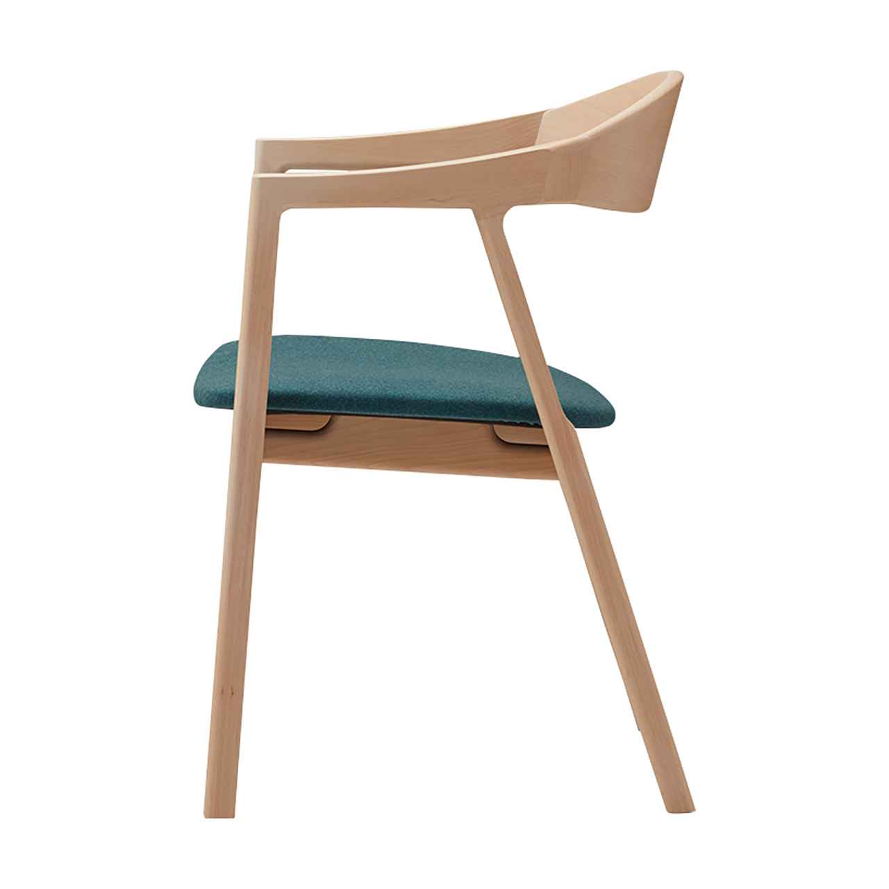 背からアームレストにかけて一体感のある曲線で背中と腕を自然にサポートするアームチェア。