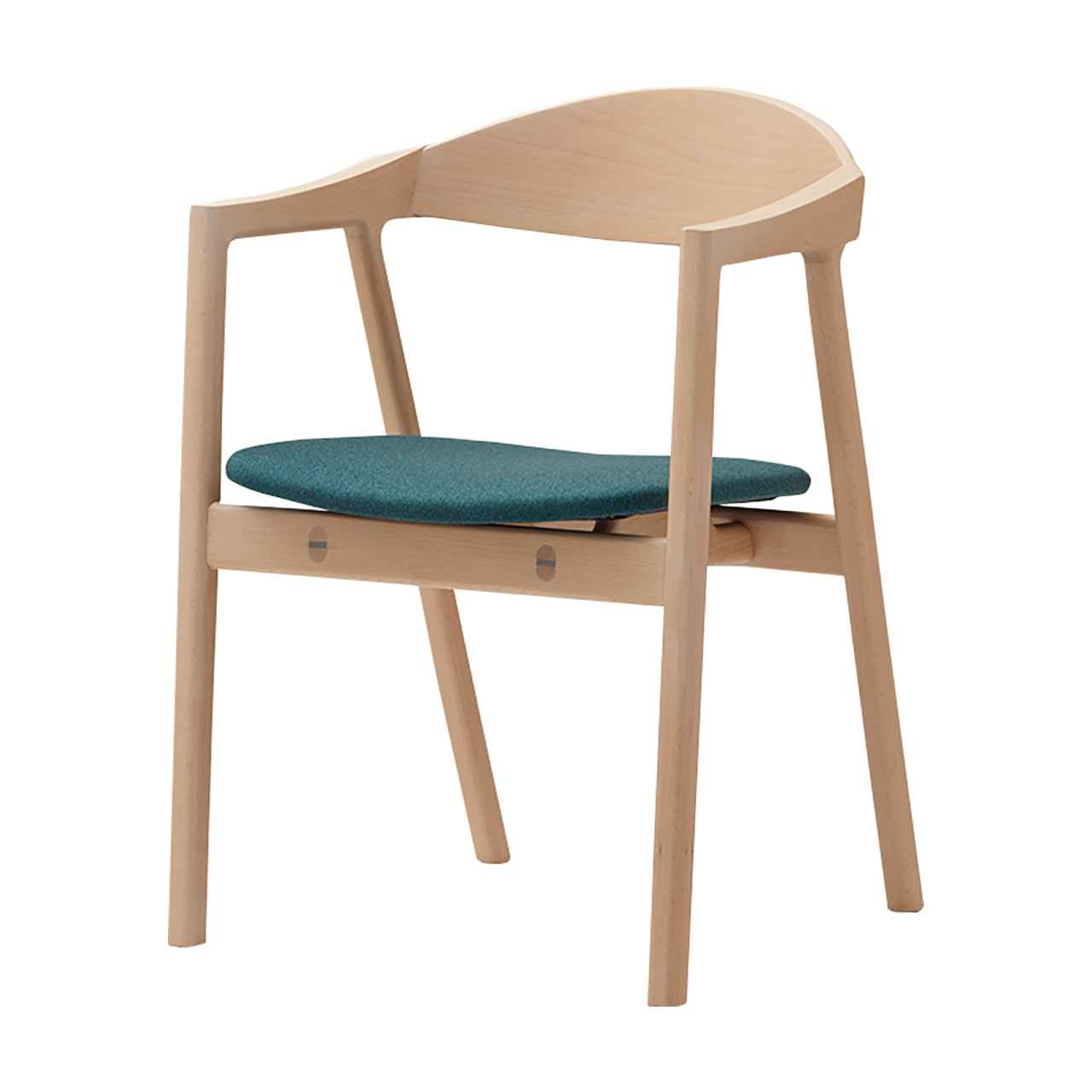 しっかりと体を支えるサイズ仕様の背板、クッション性のある張座を用いたストレスなく体に馴染む、ややゆったりとした設計でカフェやレストランでの飲食シーンの快適性を高めます。同デザインの板座タイプ「C109B」も展開しています。
