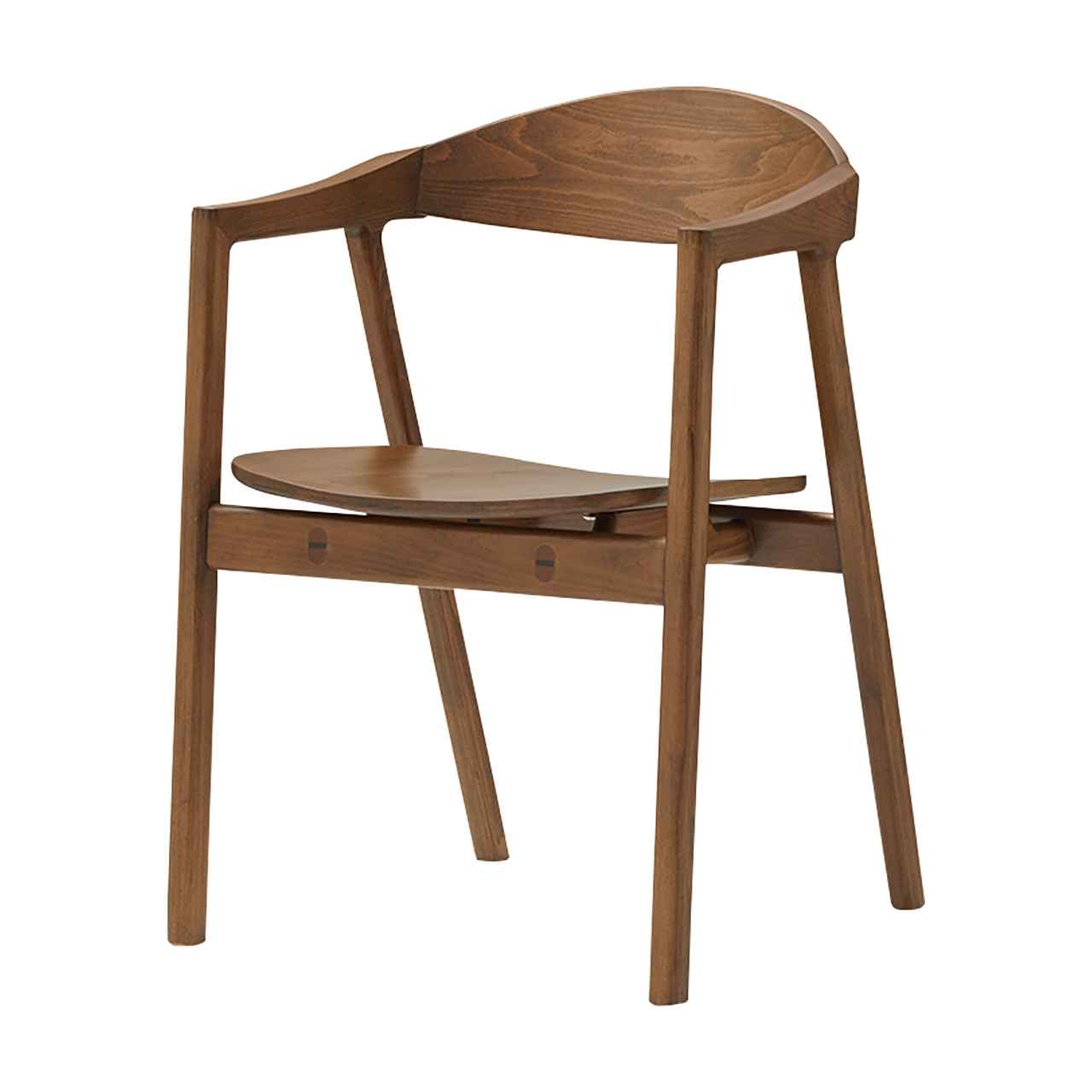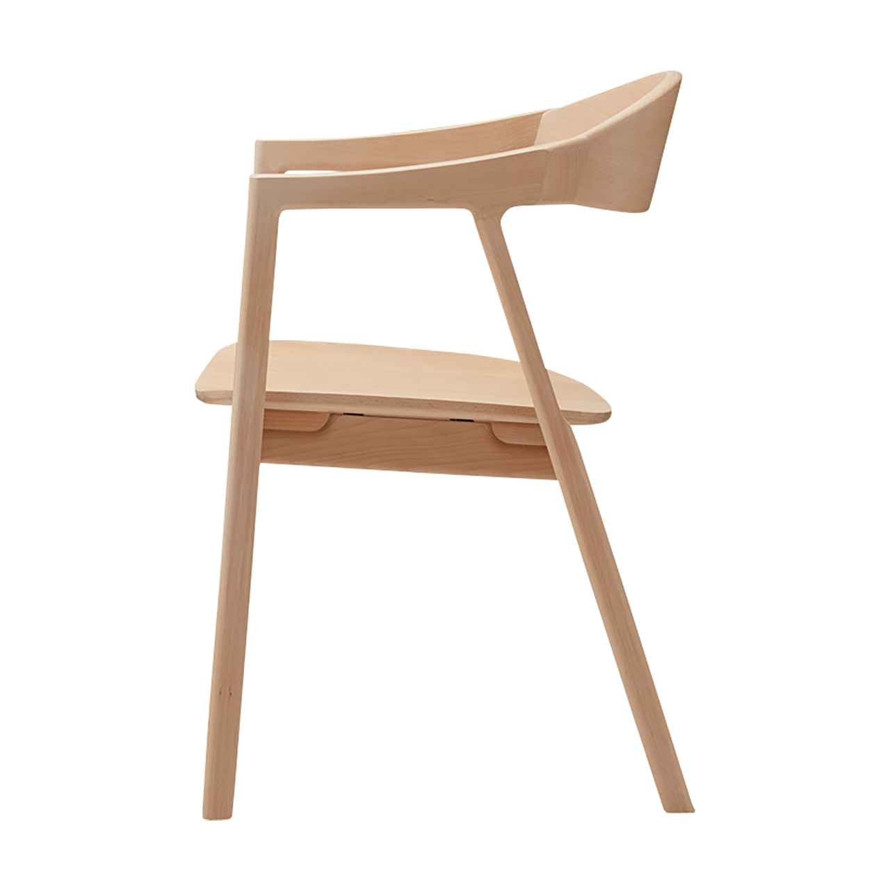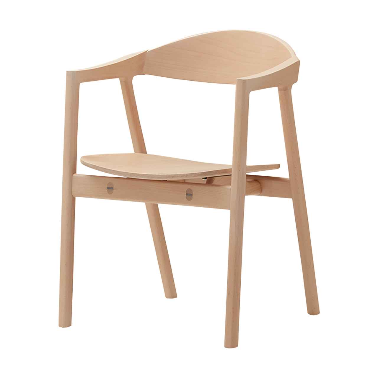背からアームレストにかけて一体感のある曲線で背中と腕を自然にサポートするアームチェア。