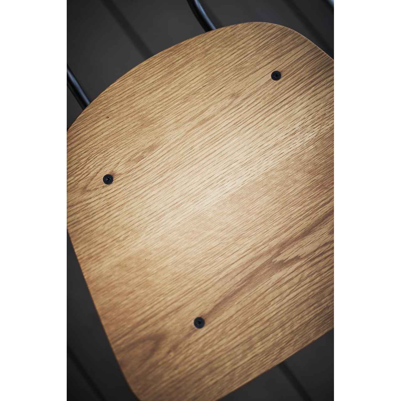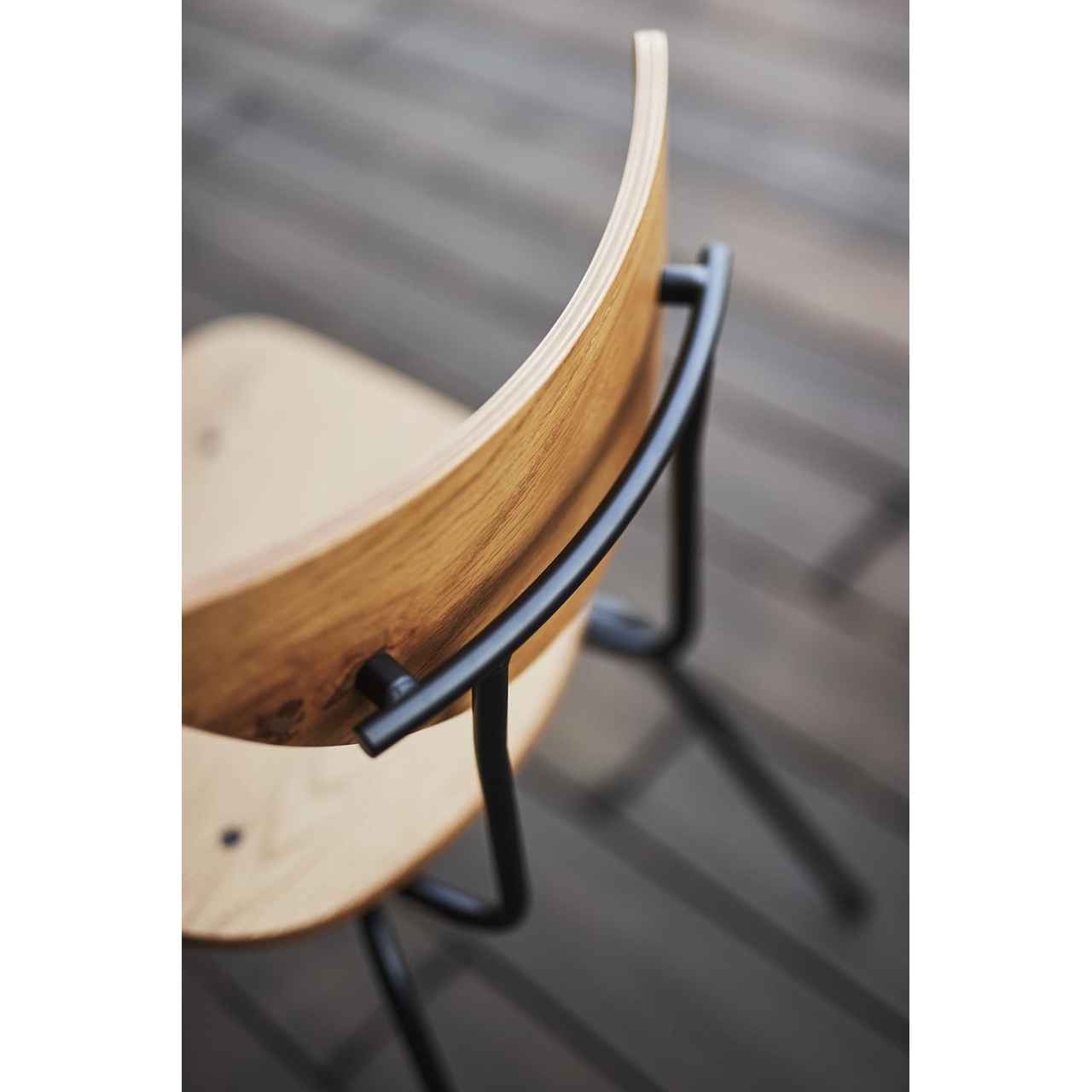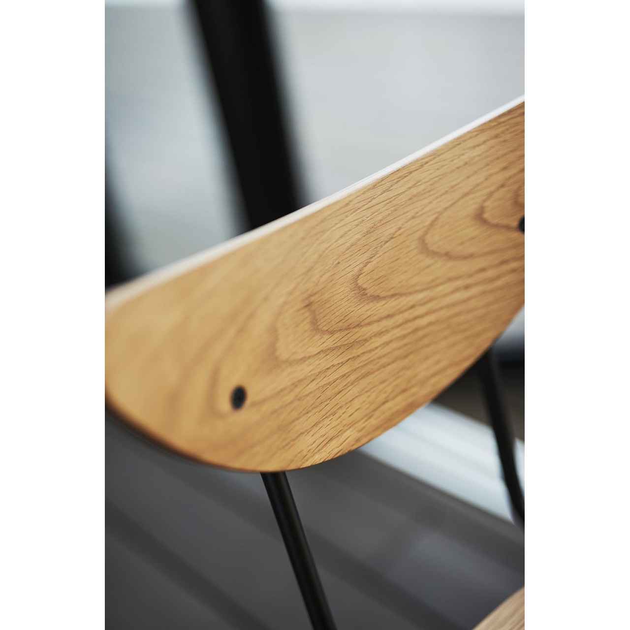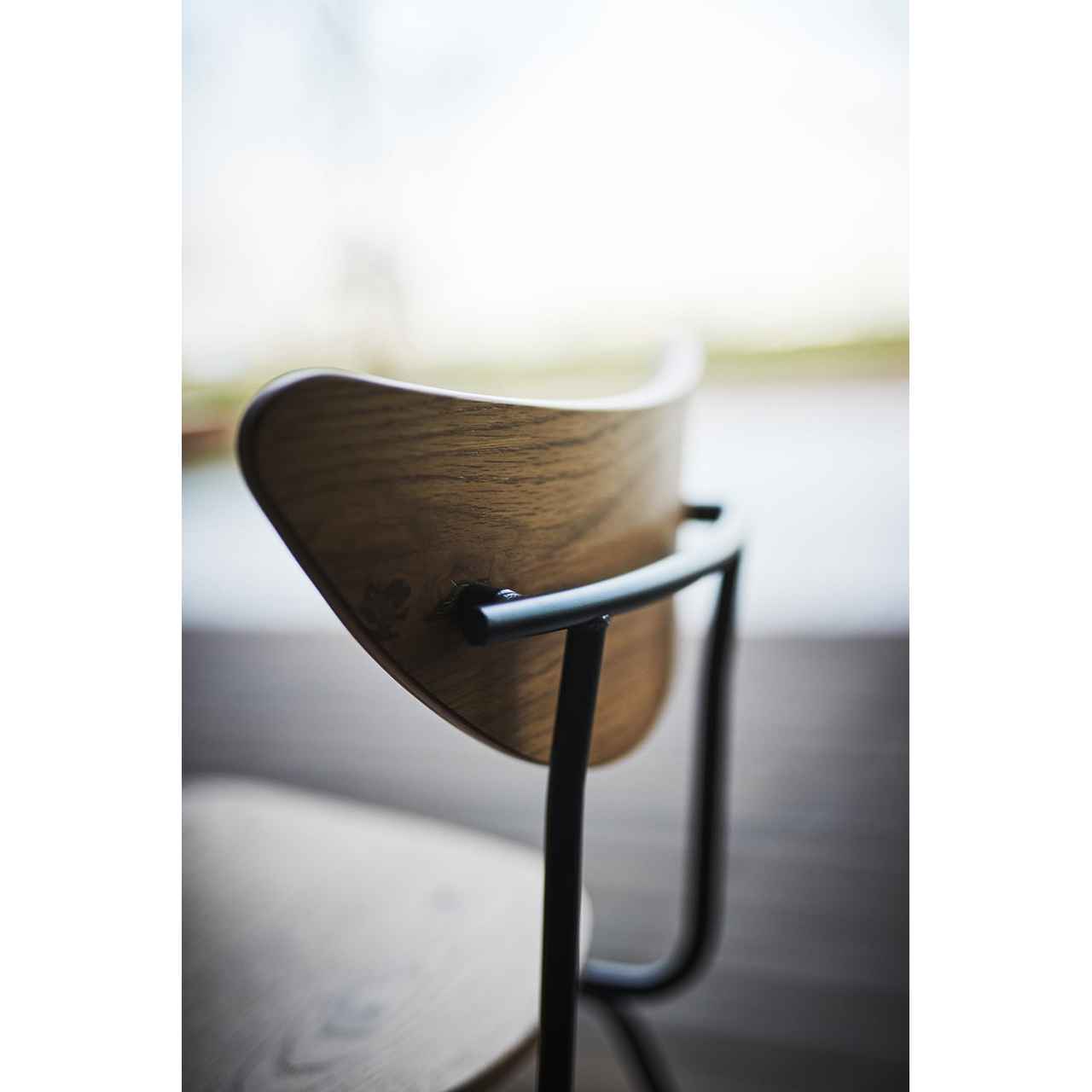 細めのスチールパイプでシャープな印象にしたフレームに、オーク突板プライウッドの背と座を合わせ、スチールチェアでありながらナチュラルな雰囲気を空間に与える事が出来ます。背と座は「張りあり・張りなし」の2タイプからお選びいただけます。