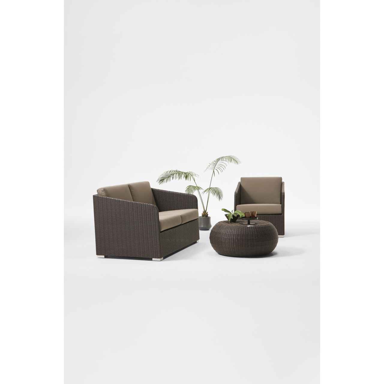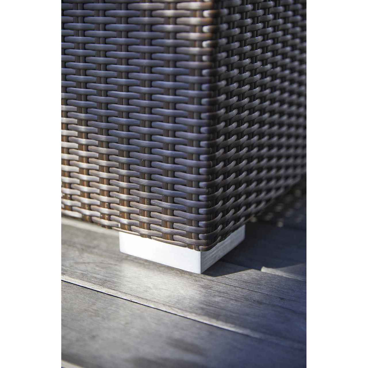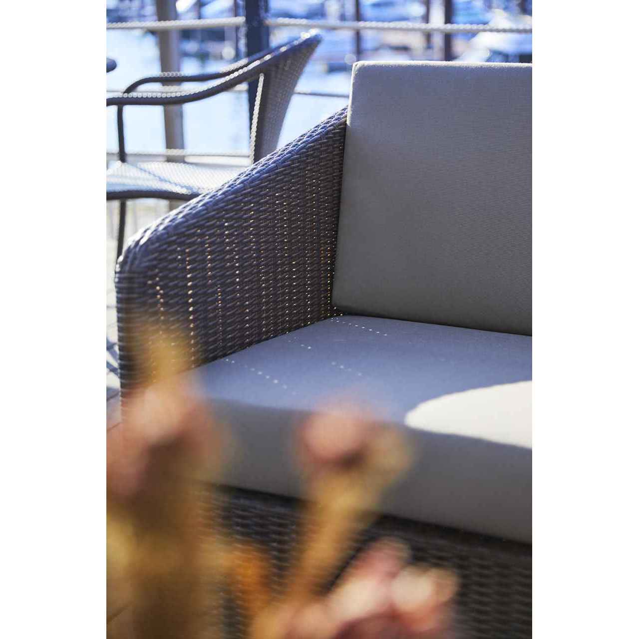 耐候性、褪色性、堅牢性、耐化学薬品性などエクステリアに必要な機能を十分に備える最も優れた人工ラタン素材「RAUCORD」で作られたソファです。優雅で格調高いデザインのソファセット。傾斜した背と座は体を面で受け止め、上質な座り心地、快適性を楽しめます。
