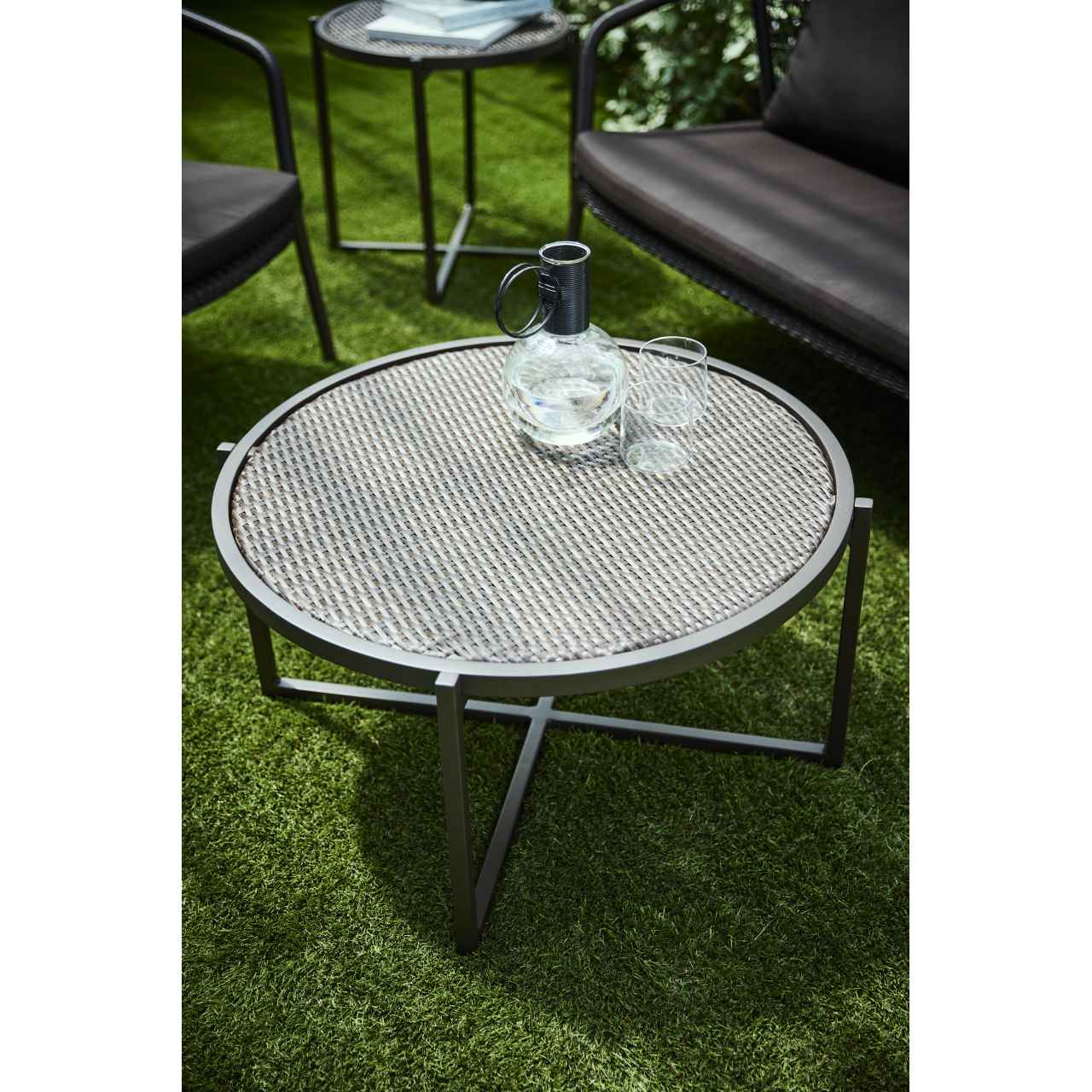耐候性・褪色性・堅牢性・耐化学薬品性など、屋外空間に求められる機能を備えた高性能人工ラタン素材「RAUCORD」を使用したテーブルです。脚部はアルミ製で軽やかに仕上げており、シリーズの中でも汎用性が高く、カフェやレストランのテラス、商業施設の屋外スペースなど幅広いシーンで活躍します。人工ラタン素材のソファとの組み合わせにも適した、機能性とデザイン性を兼ね備えたテーブルです。