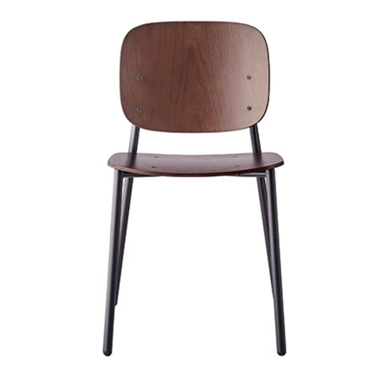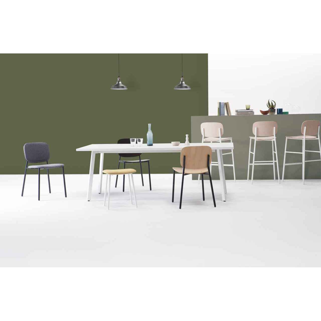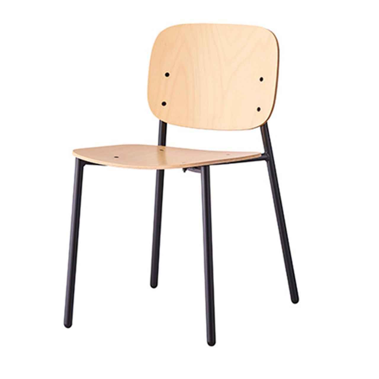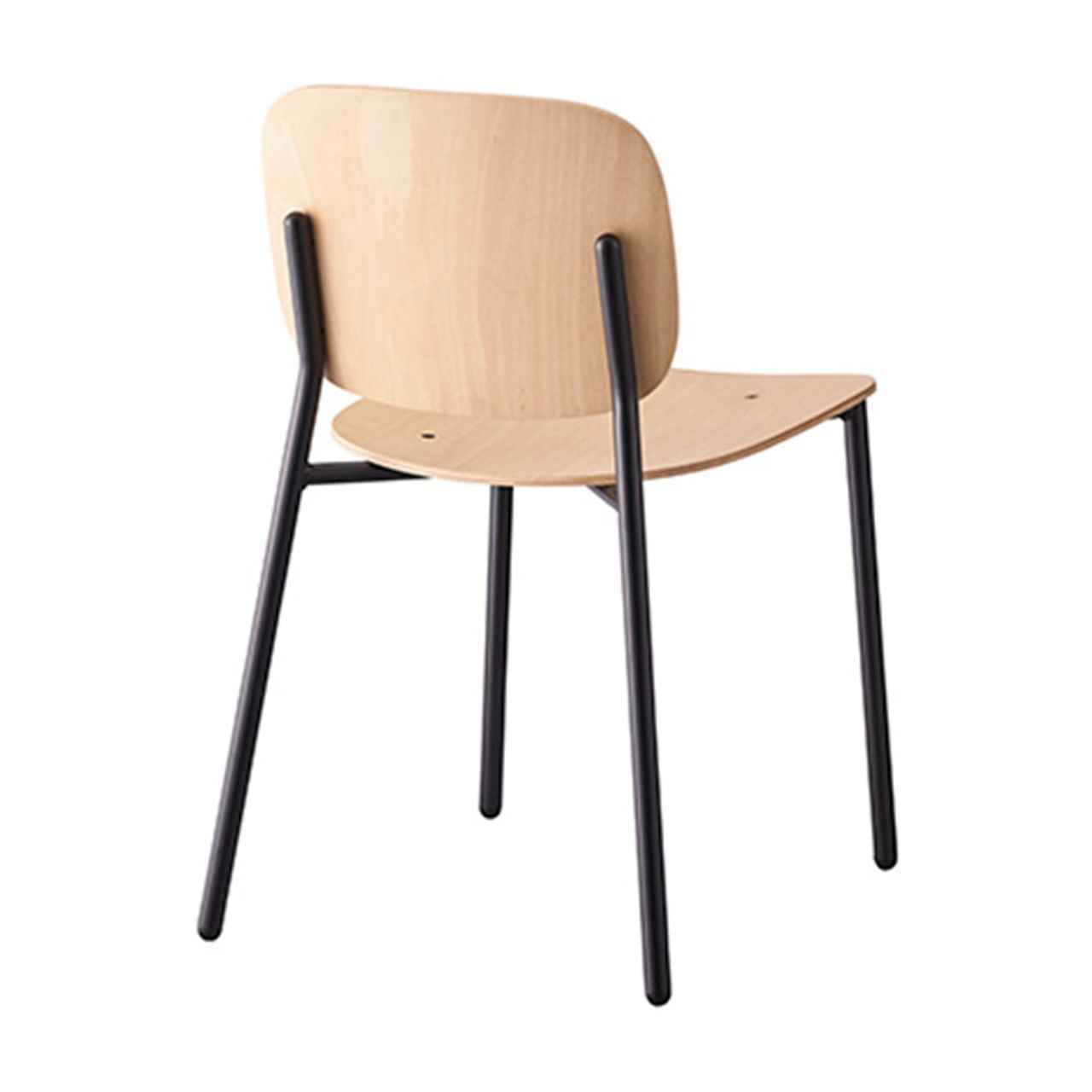 一般的にスチール製家具に使用されるパイプよりも太いパイプを用いたチェアシリーズ。パイプ径を太くすることで、部材や溶接部の強度を容易に確保することが可能になりました。またフォルムが木製椅子に近づくことで、スチール製ながらも温かみのあるデザインとなり、バリエーションの豊富さも相まってフレキシブルに使用できるチェアシリーズとなりました。