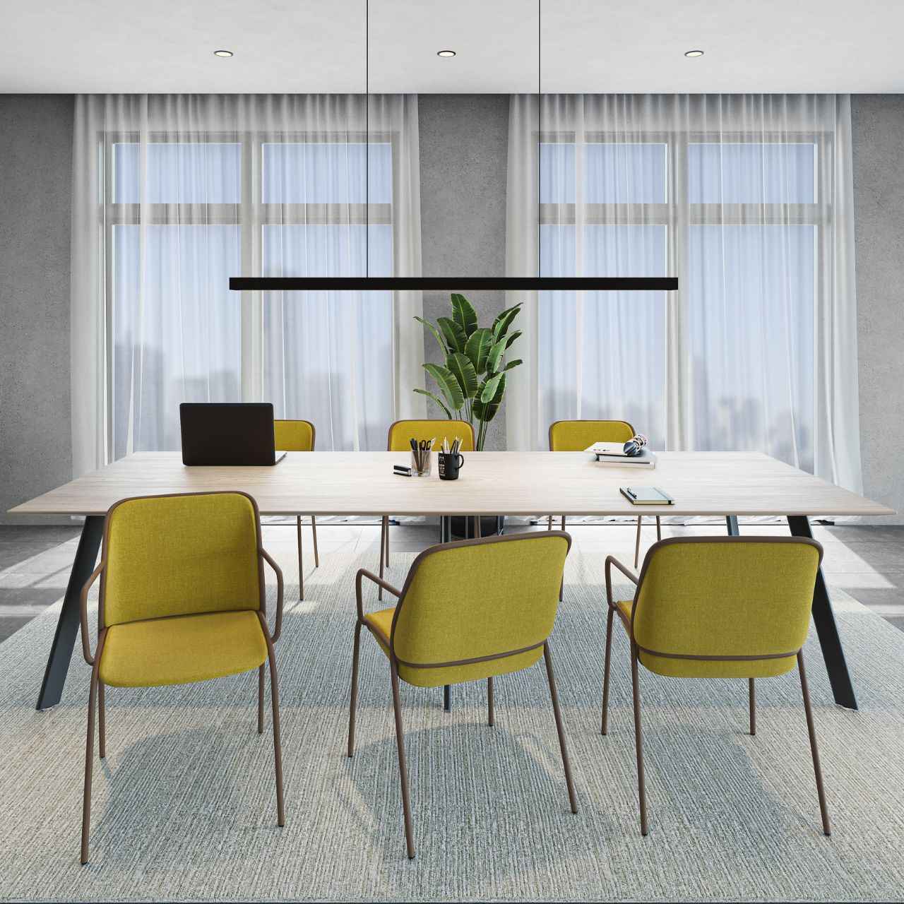 二枚貝の貝殻から着想を得た有機的で柔らかな曲面形状が、身体に心地よくフィットし、空間に自然なリズムをもたらすスチール製アームチェア。前脚と後脚を繋ぐスチールフレームにより構造の一体感と安定性を確保し、洗練された印象を演出します。フレームカラーは豊富な5色展開となっております。チェア・アームチェア・キャスターチェアの3タイプからお選びいただけます。オフィスのコワーキングエリアやリフレッシュエリアをカラフルに彩ります。