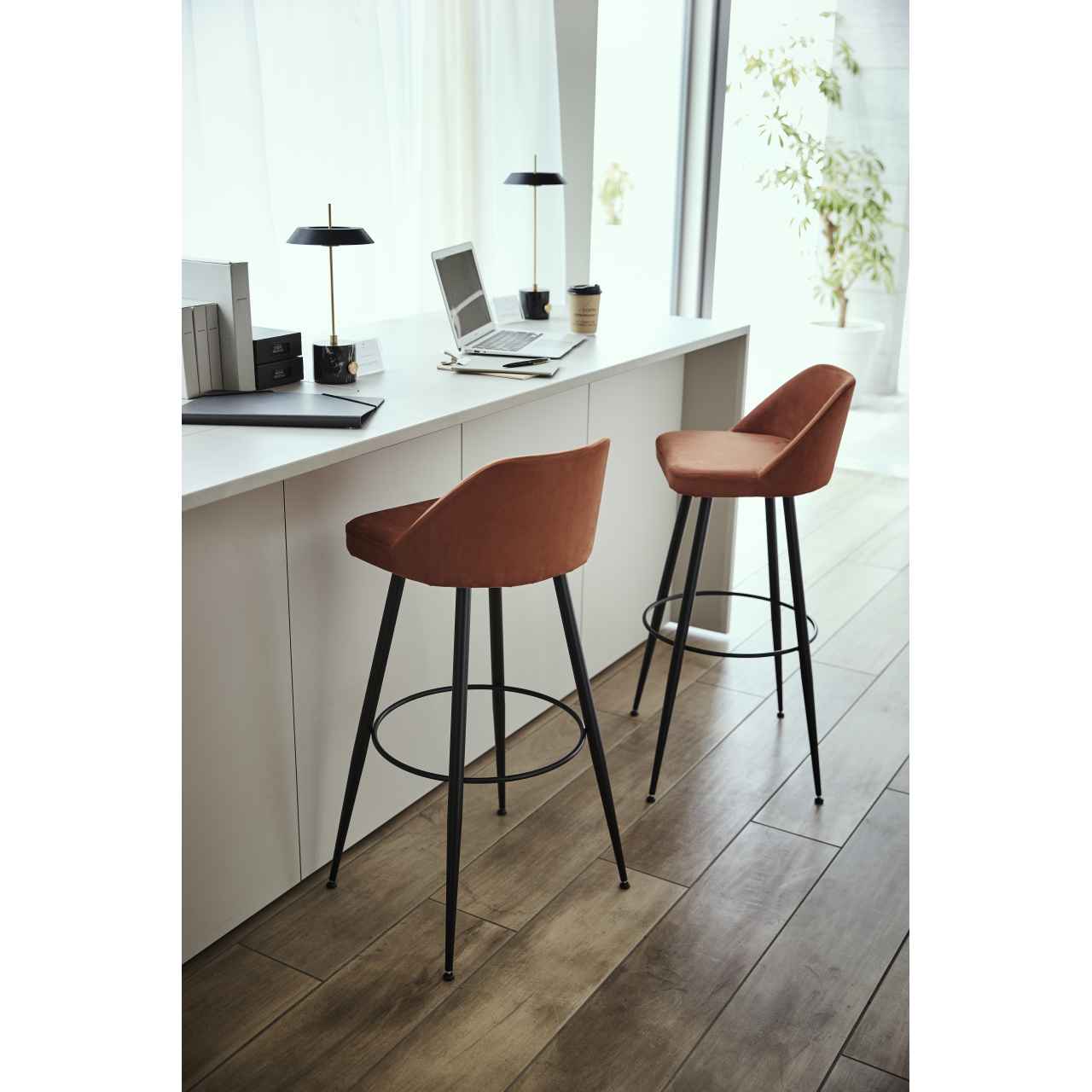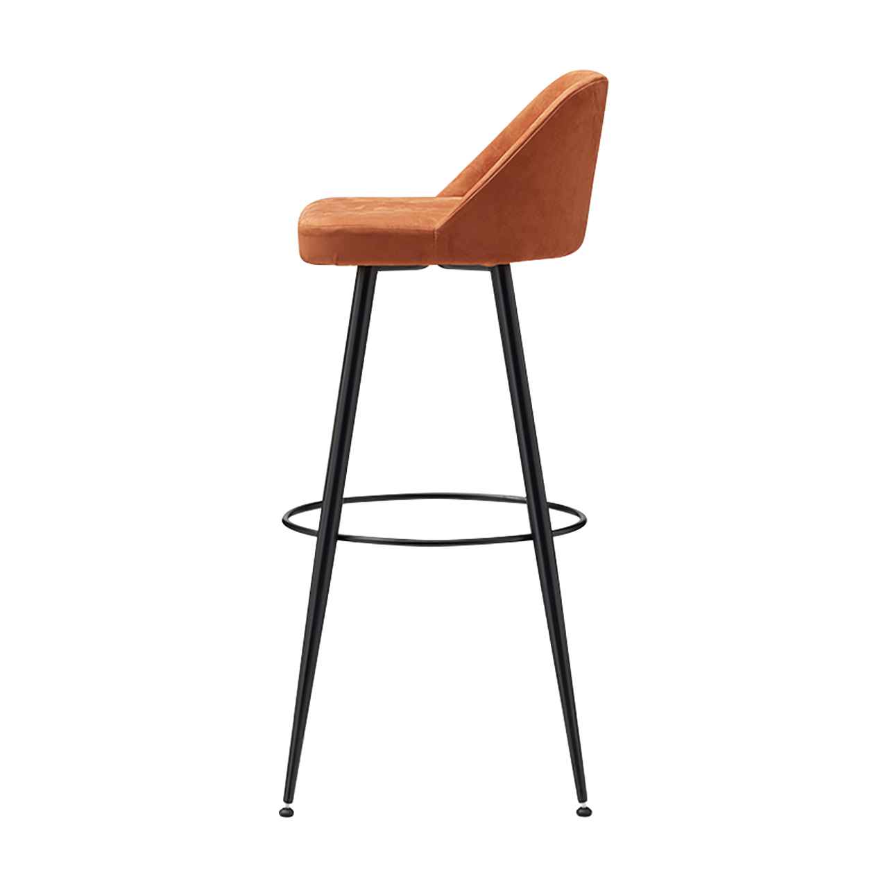 やわらかな曲線が映えるシンプルモダンなハイチェアです。コンパクトサイズで省スペースでも複数台をレイアウト可能ながら、ローバック形状が腰回りをやさしくホールドします。リング状のフットレストとテーパーをかけた脚部が上品で軽やかな印象を与え、レストランやホテルのバーカウンターシーンで空間をすっきりと引き立てます。