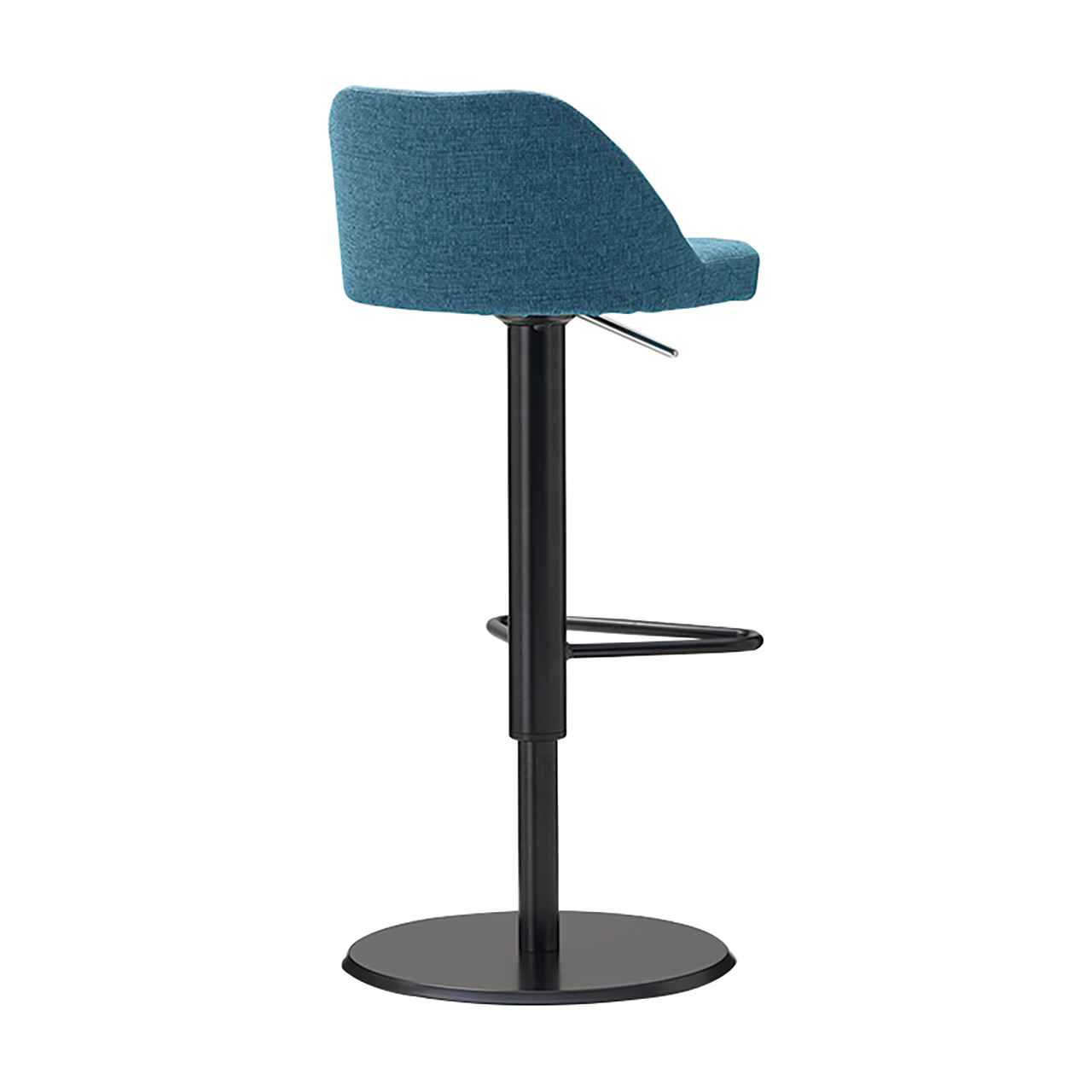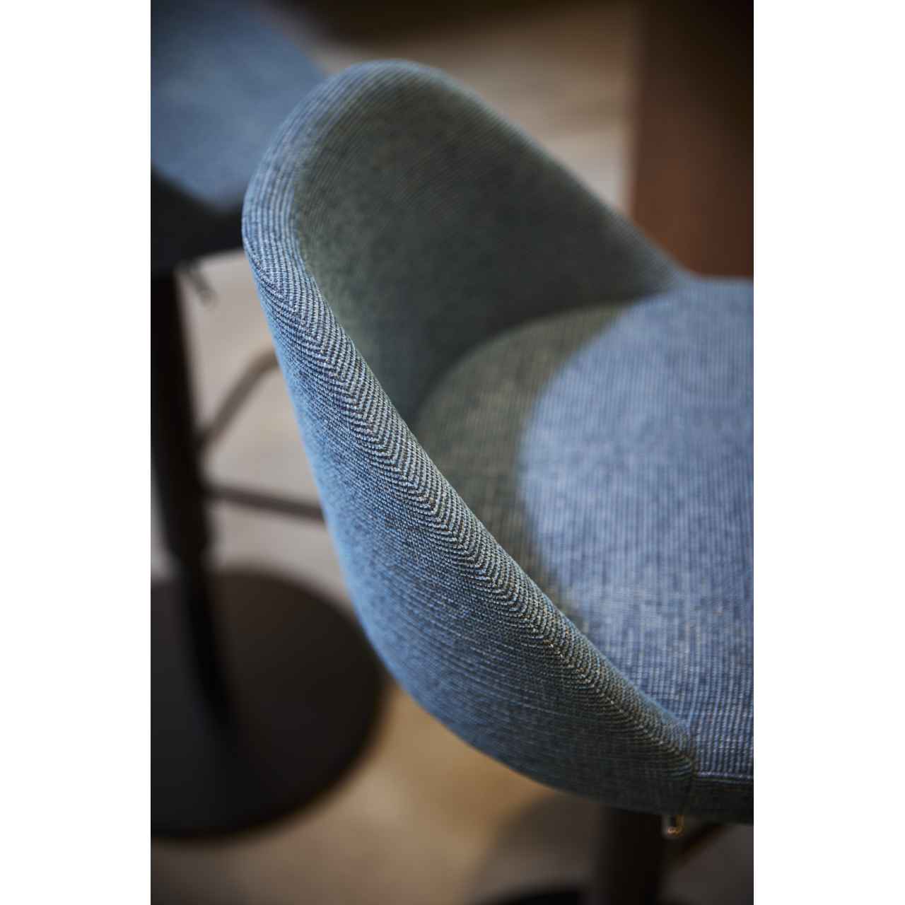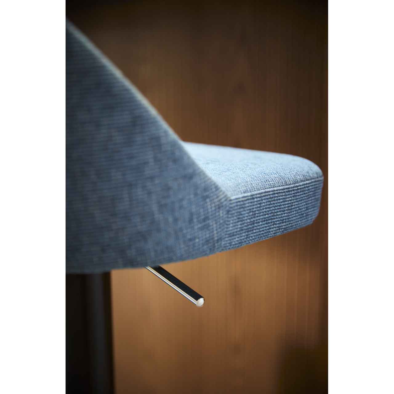 ローバックのコンパクトな座面に回転昇降機能を備えたハイチェアです。カウンターの高さや使用者に合わせて自在に調整可能で、快適な座り心地を提供します。オリジナル形状の丸みを帯びた三角形フットレストが座面上部のやわらかな曲線と統一感を生み、カフェやオフィスのカウンターエリアなどで上品で洗練された空間を演出します。