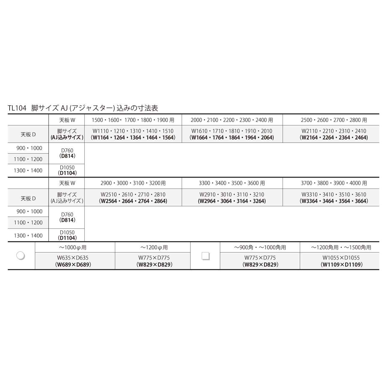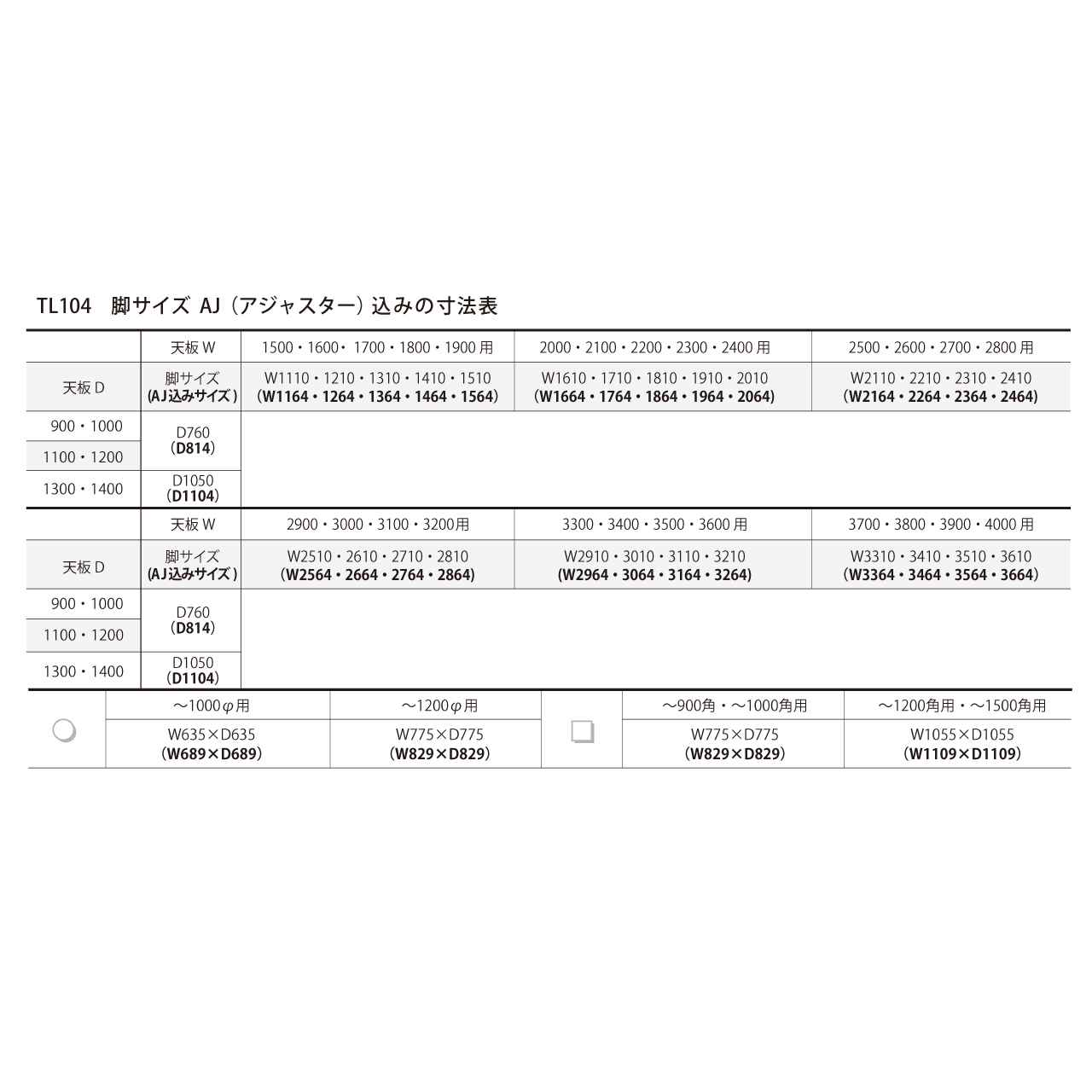 ・天板サイズが「W2500」以上の場合は、中間脚が付きます。