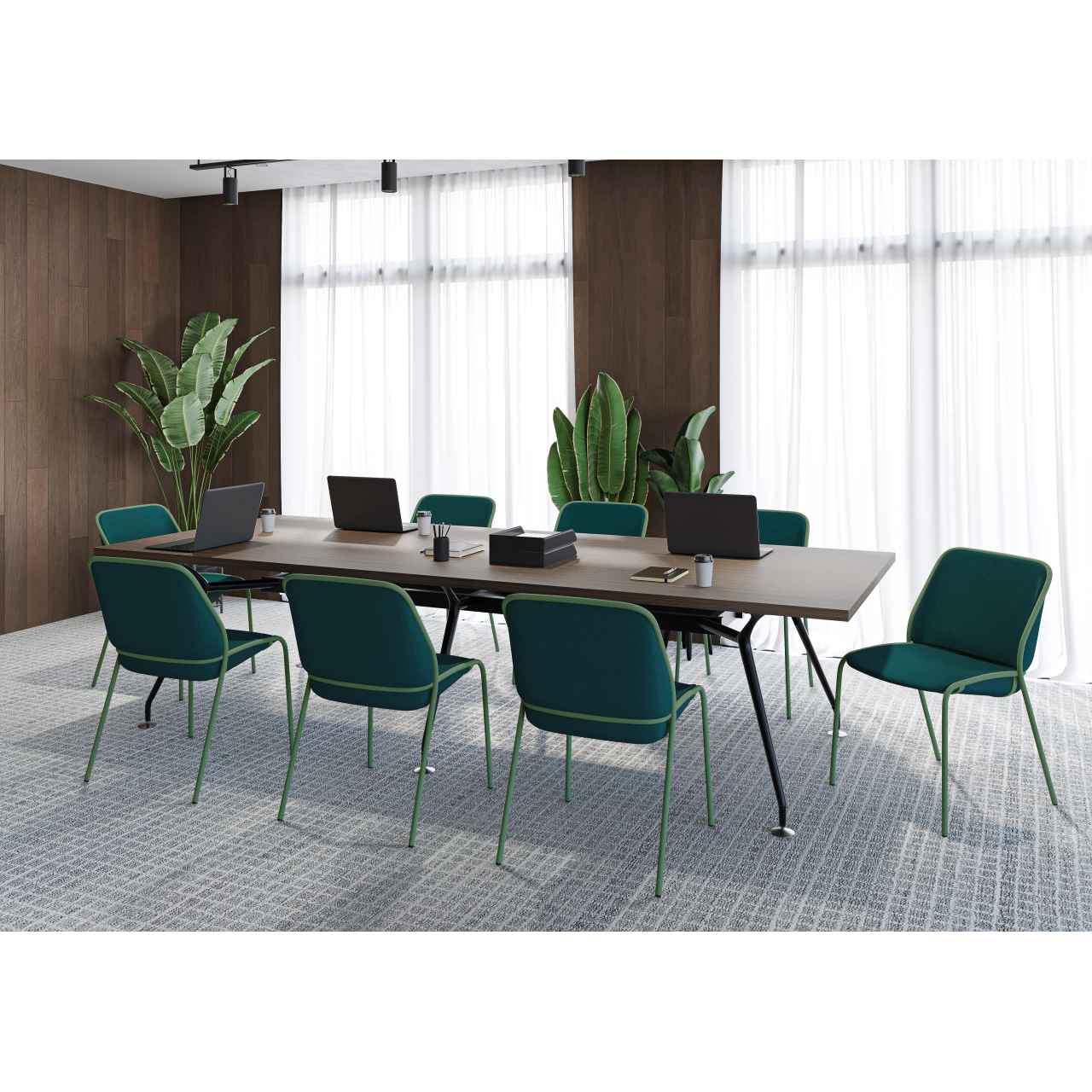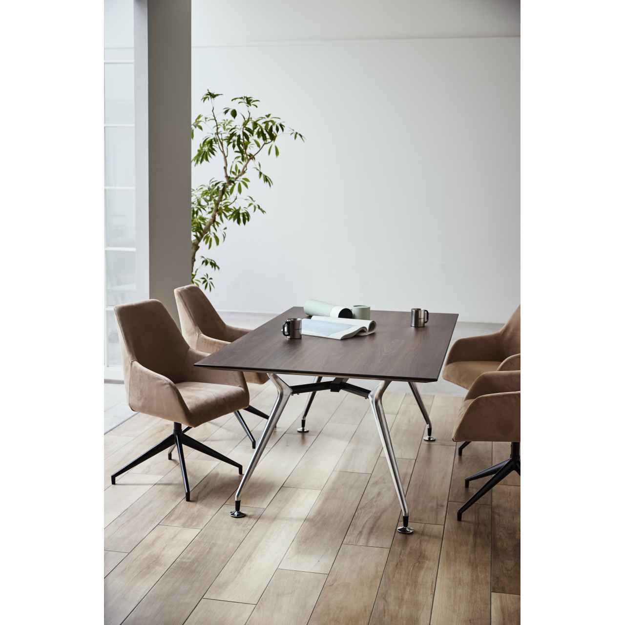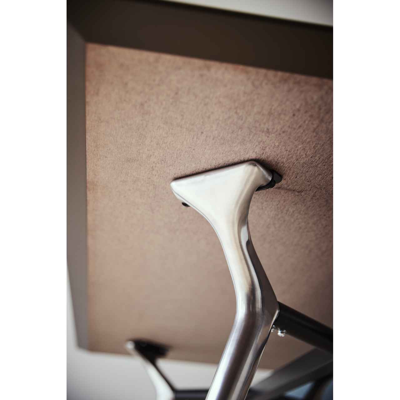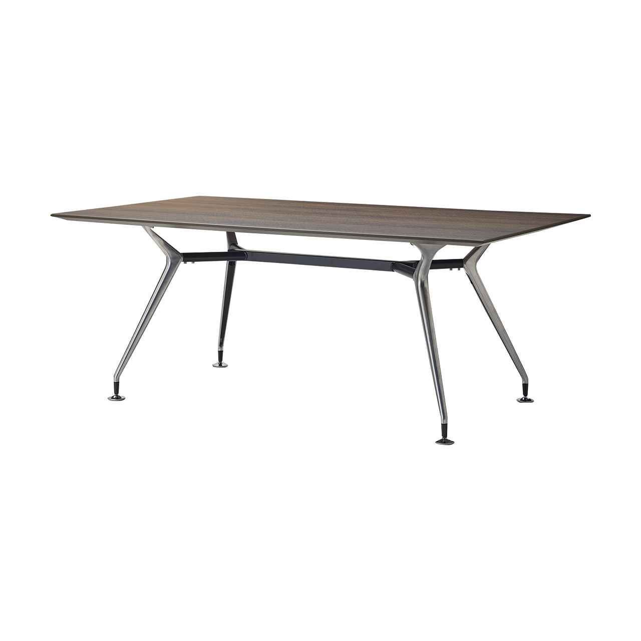 テーパー形状でスタイリッシュな脚が、モダンテイストの空間に調和するテーブル脚です。アルミダイカスト製で磨き仕上げのポリッシュと汎用性の高いブラックの2色展開となっており、W4000×D1400サイズの天板まで対応可能です。オフィスのミーティングルームやコワーキングエリアなど、キャスターチェアやスチールチェアと組み合わせてモダンで洗練された空間を演出します。