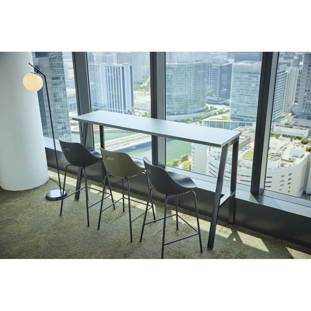 脚の中間部に補強パーツを設けず、シンプルに仕上げたハイカウンター用テーブル脚です。ブラック、ホワイト、シルバーの3色展開で、さまざまな内装のオフィス環境に対応可能です。既存のハイチェアと組み合わせて、カフェカウンターやオフィスの休憩スペースにご提案いただけます。
