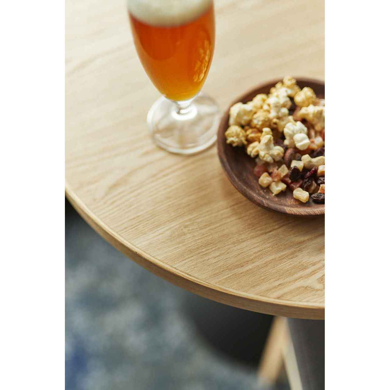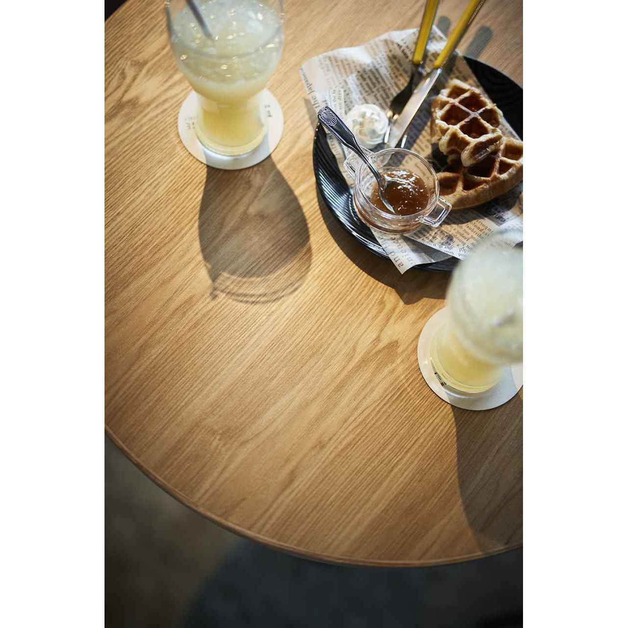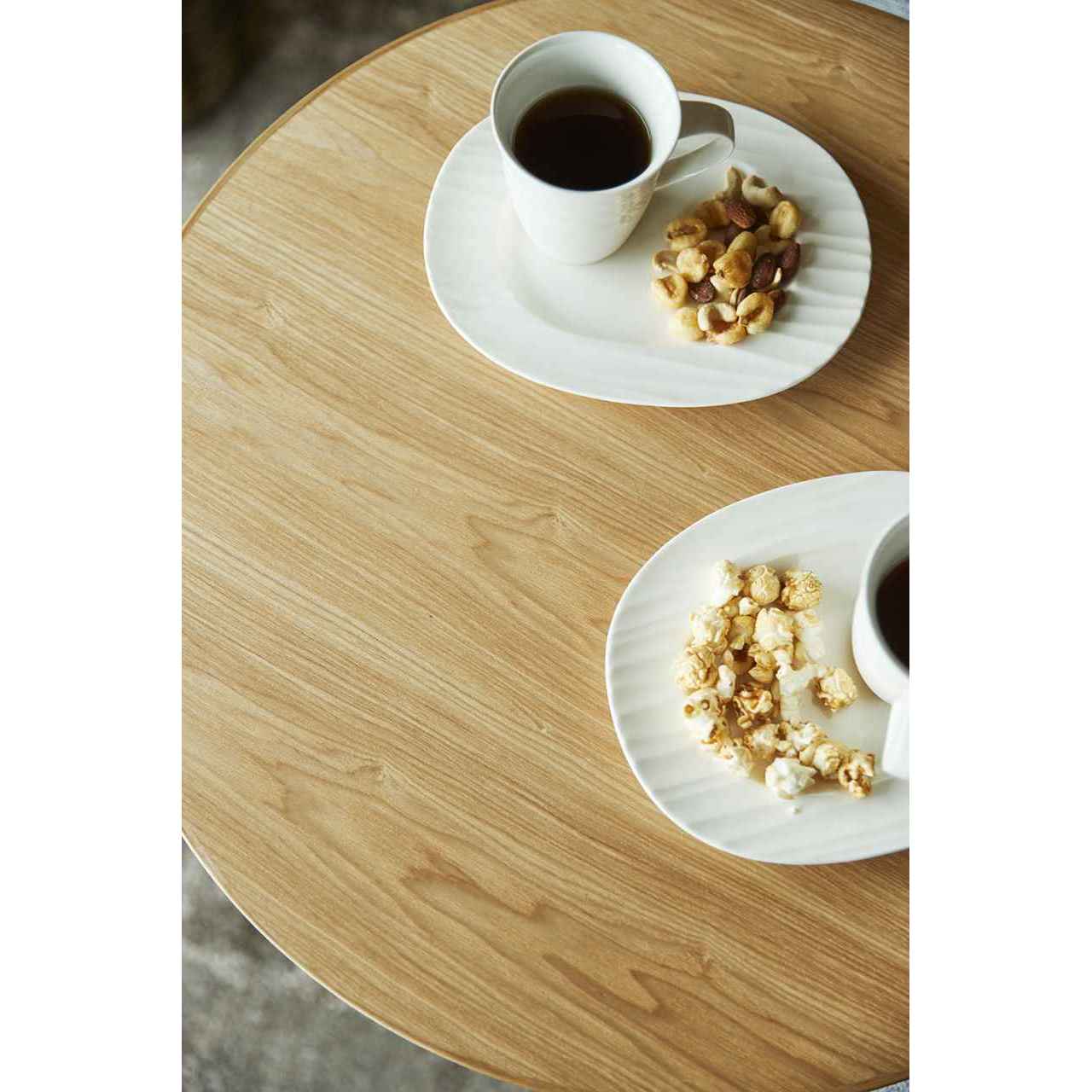 トップには突板・木口には無垢材をまわした仕様で、塗装色により幅広くコーディネートできる。