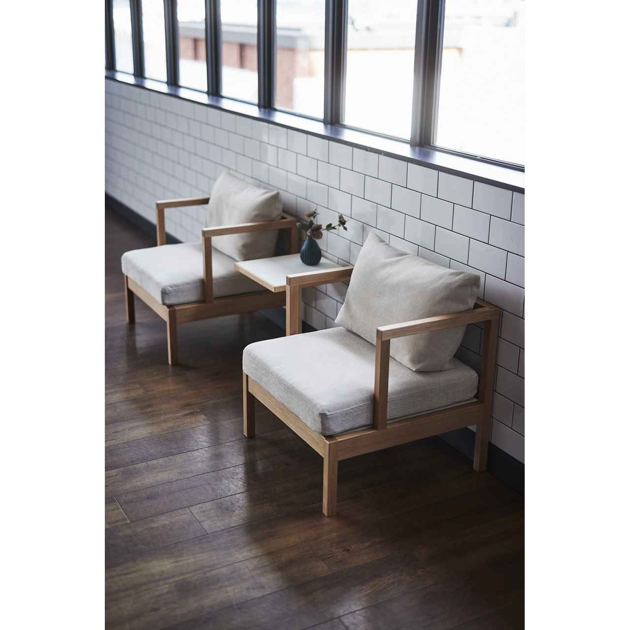 グリッド感のある空間デザインに合わせて提案するロビーチェアシリーズ。空間との調和性が高いスクエアなフレームに優しいディティールのクッションを合わせたグリッドタイプ。肘から背にかけては張り込まず、抜け感のあるデザイン。W015の他に、多角形型のポリゴン / W013・ラウンド型のドット / W014と異なるデザインでも同じ空間でレイアウトできる3 タイプをラインナップしています。