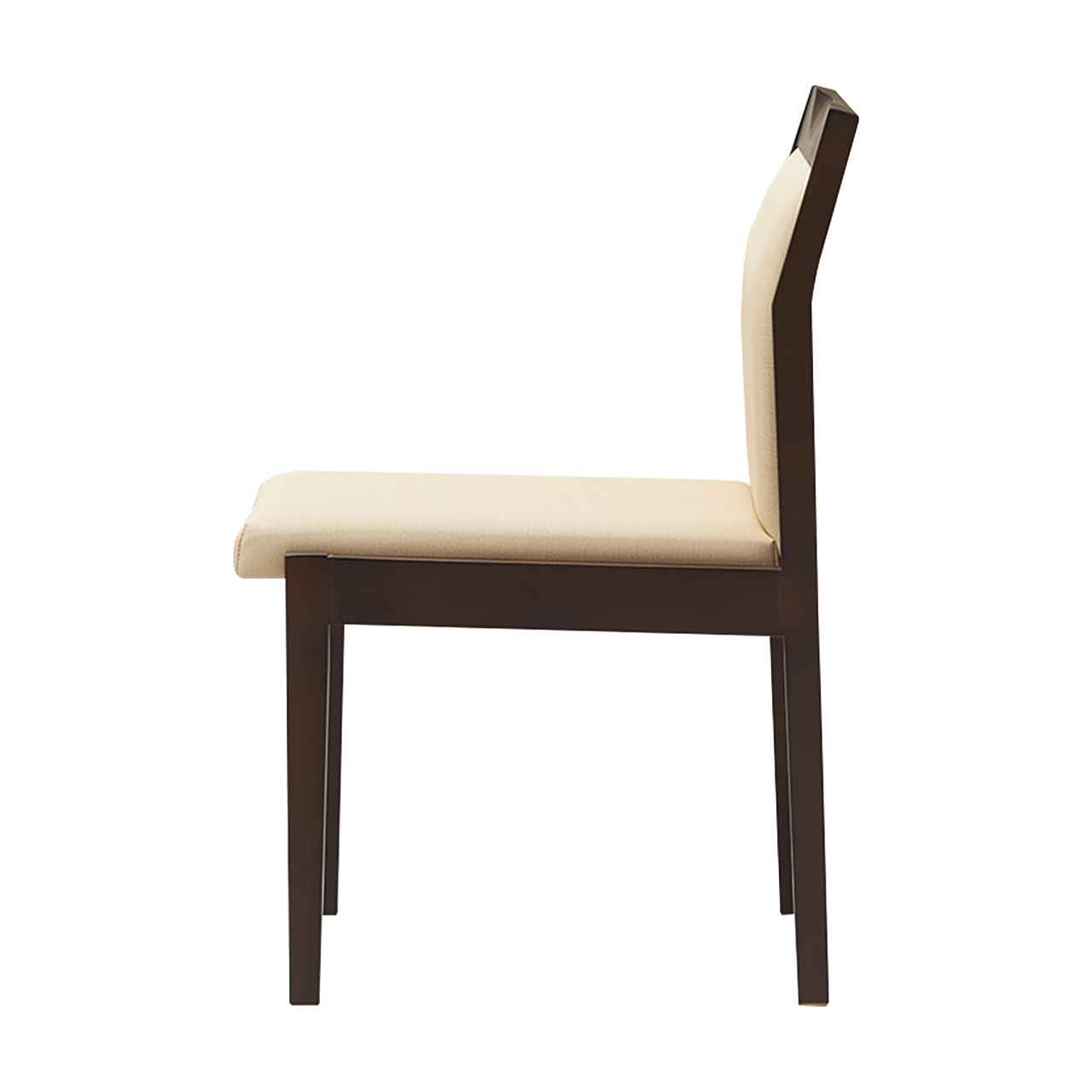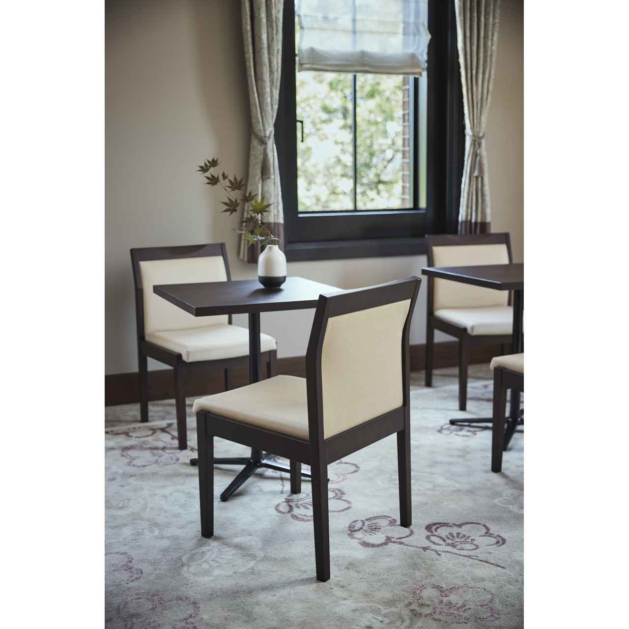 40年以上前にABORDで人気を博した商品のリバイバルモデルです。重厚感のある直線的な木部ディテールを受け継ぎつつ、現代の空間でも使いやすいサイズ感に設計されています。張地や塗装によって、和洋問わずカフェやレストラン、ホテルのラウンジエリアなど幅広い空間に調和するシンプルで落ち着いた雰囲気の木製椅子です。