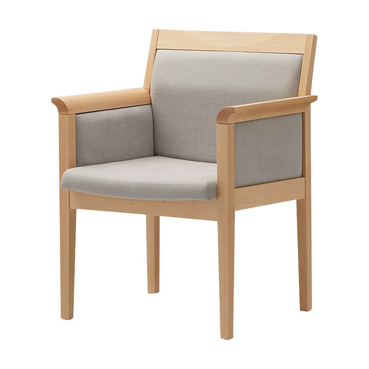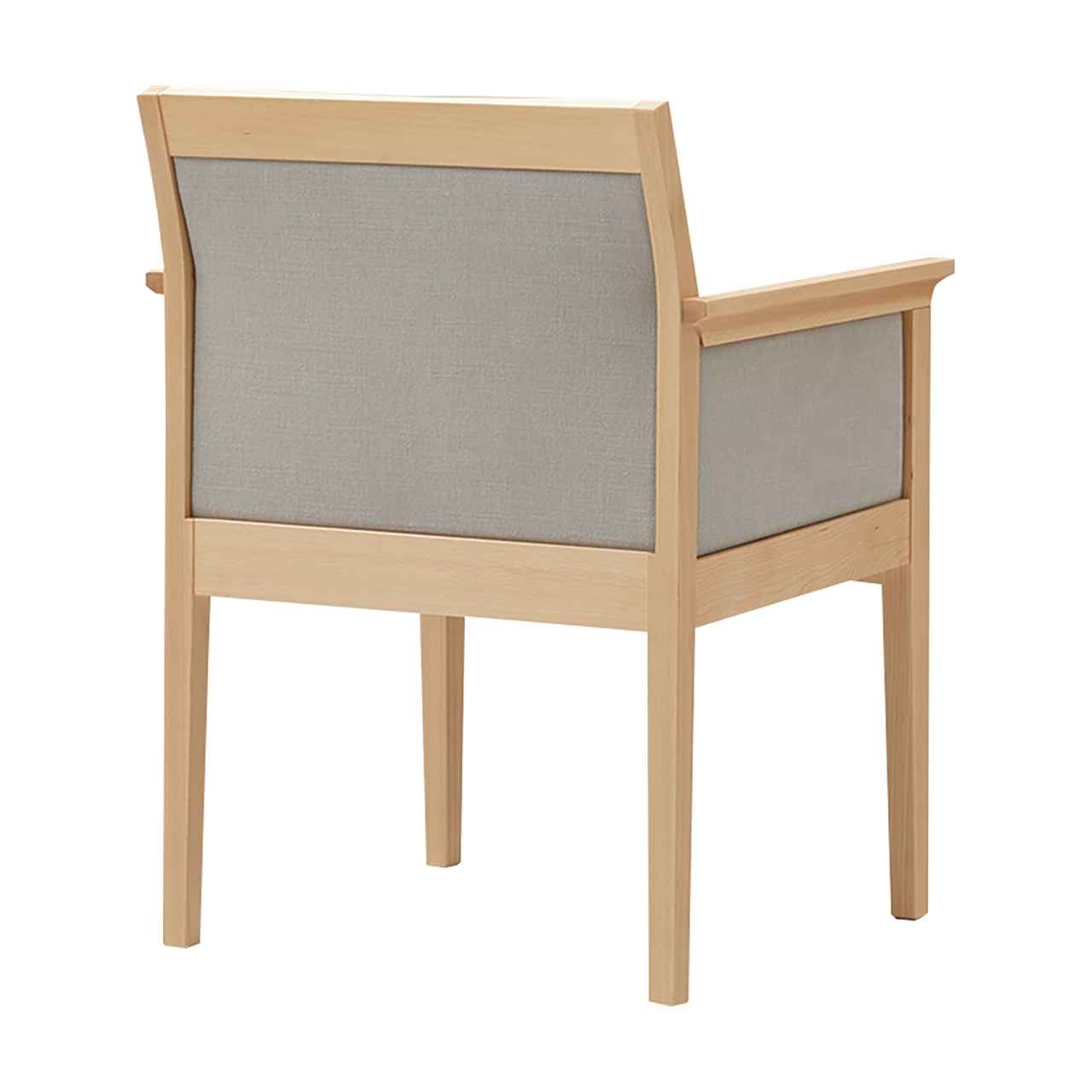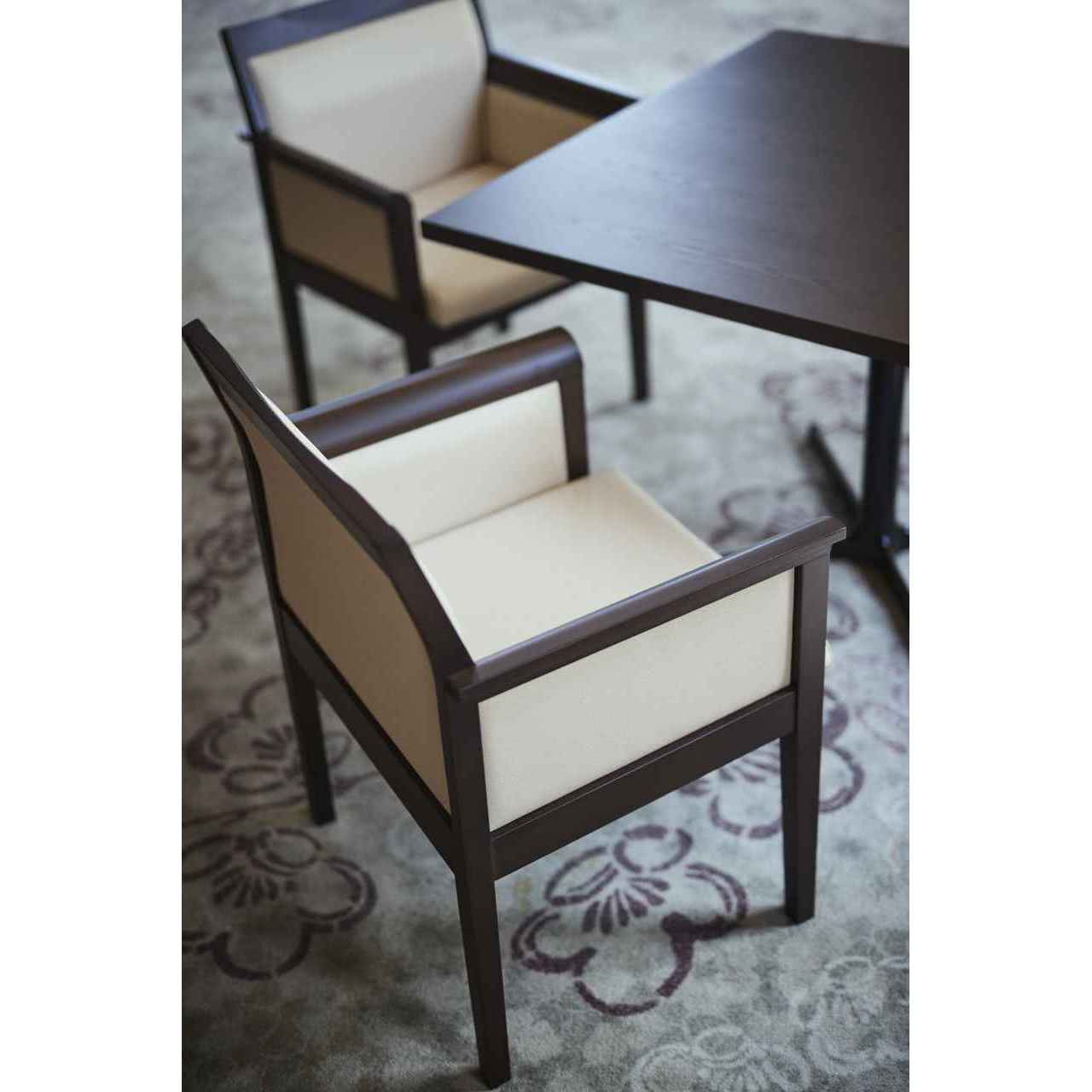 40年以上前にABORDで人気を博した商品のリバイバルモデルです。重厚感のある直線的な木部ディテールを受け継ぎつつ、現代の空間でも使いやすいサイズ感に設計されています。張地や塗装によって、和洋問わずカフェやレストラン、ホテルのラウンジエリアなど幅広い空間に調和するシンプルで落ち着いた雰囲気の木製アームチェアです。