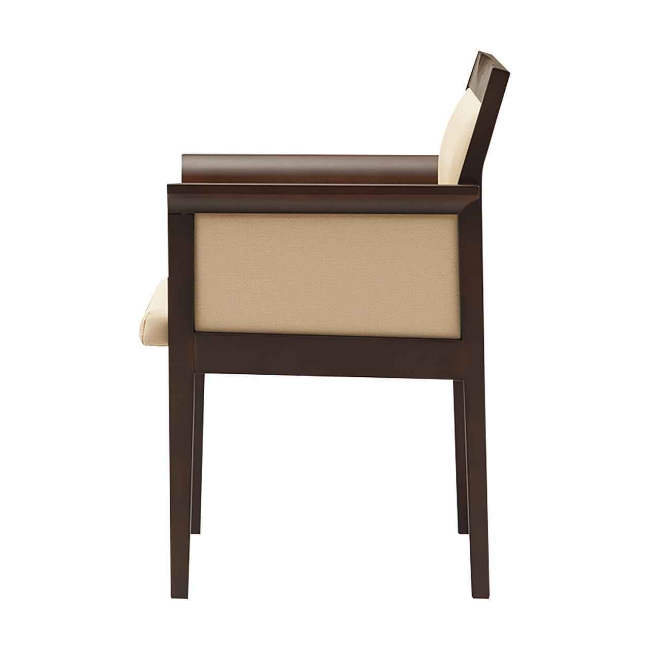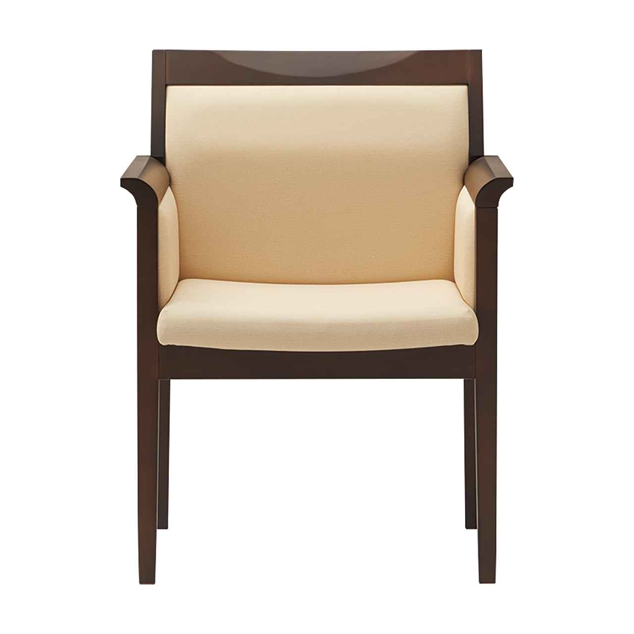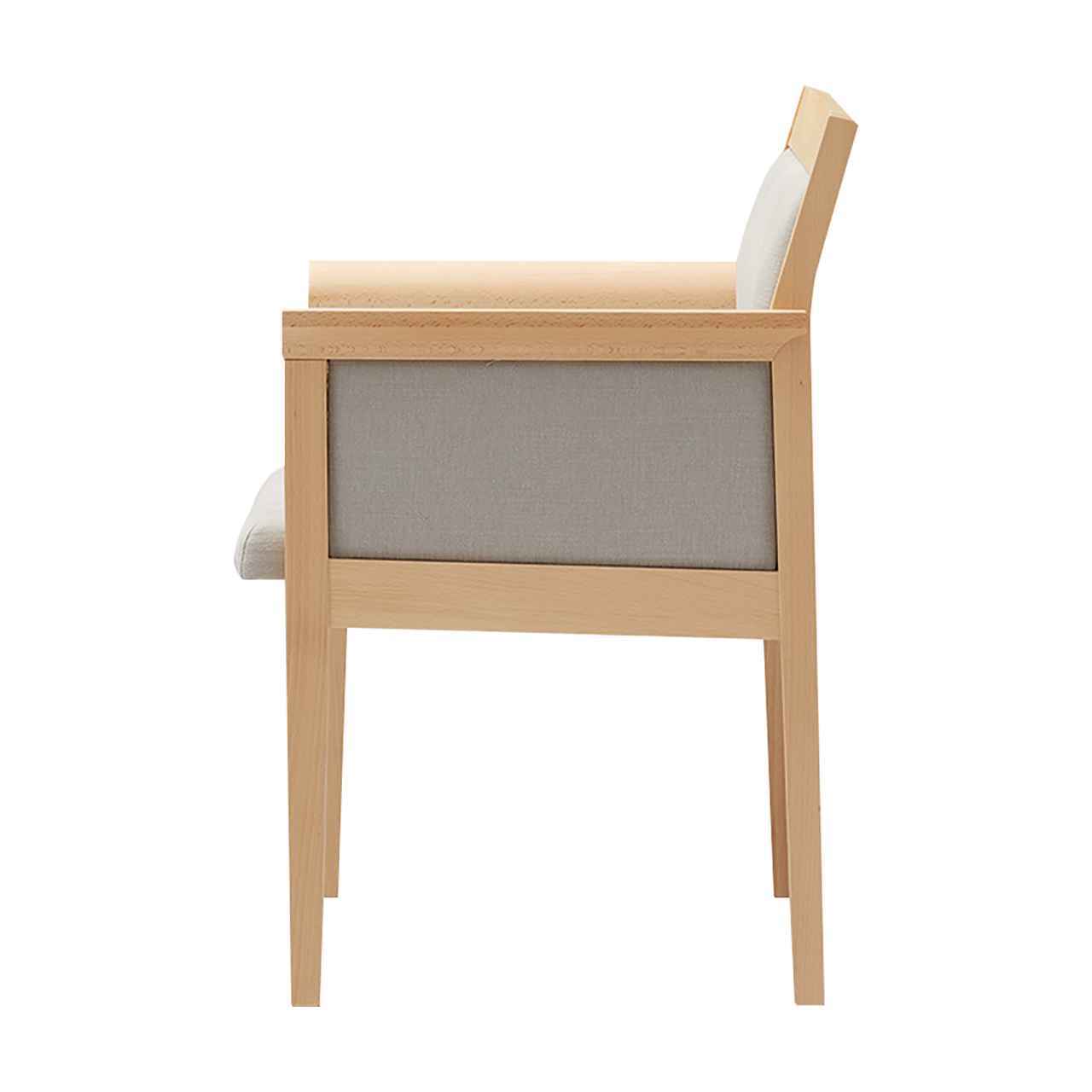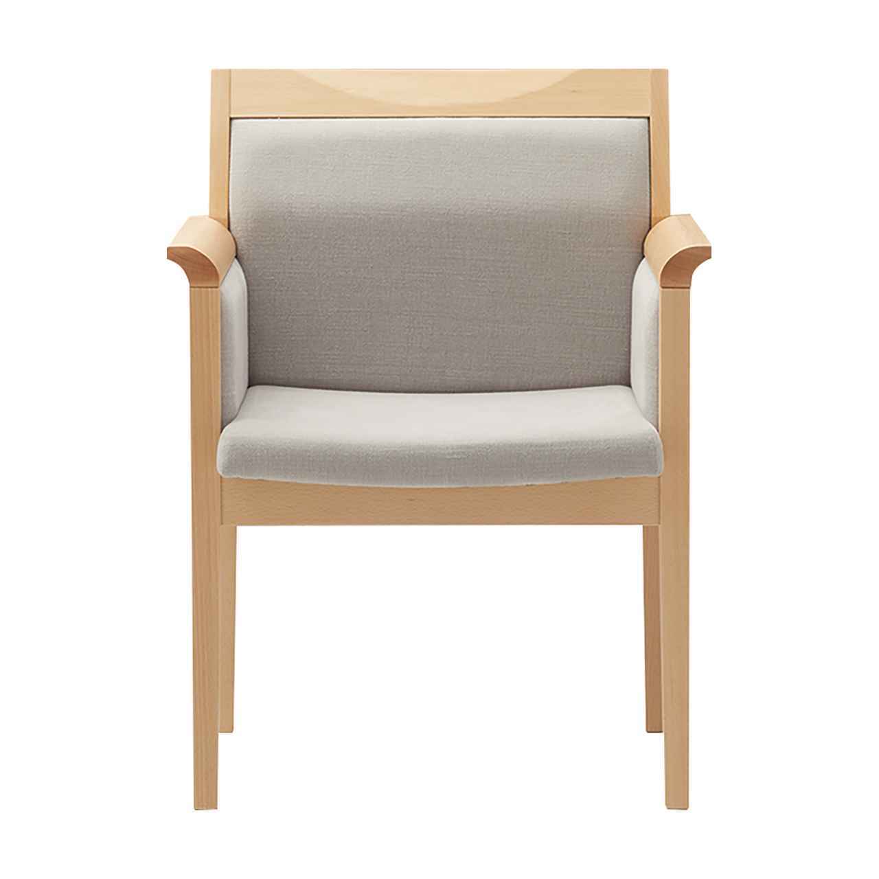 40年以上前にABORDで人気を博した商品のリバイバルモデルです。重厚感のある直線的な木部ディテールを受け継ぎつつ、現代の空間でも使いやすいサイズ感に設計されています。張地や塗装によって、和洋問わずカフェやレストラン、ホテルのラウンジエリアなど幅広い空間に調和するシンプルで落ち着いた雰囲気の木製アームチェアです。