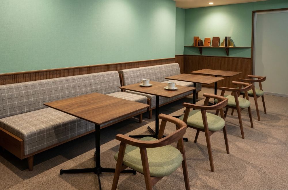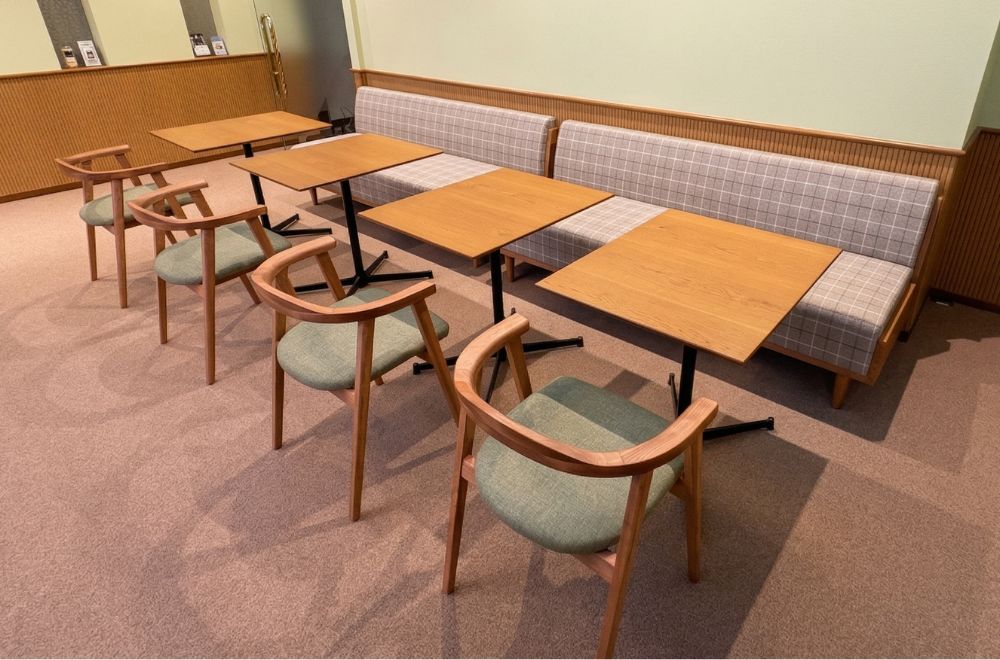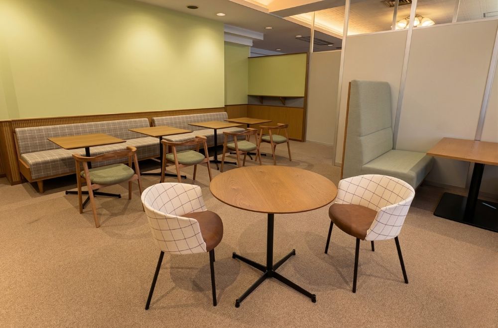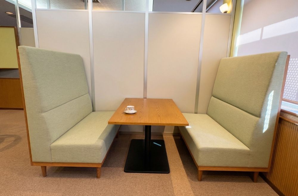 NTT西日本株式会社 三重支店 リフレッシュスペースに、Coccoleのチェア・ソファ・木製テーブル、ABORD スツールを採用いただきました。グリーンと木質を基調とした空間に、やわらかな座り心地と温もりある素材感が調和。ベンチ席やテーブル席、カウンター席、さらにオリジナルで製作した造作のボックス席を組み合わせることで、ひとり利用から軽い打ち合わせまで柔軟に対応。用途に応じて選べる多様な席構成が、オフィスの中に心地よい居場所を生み出しています。